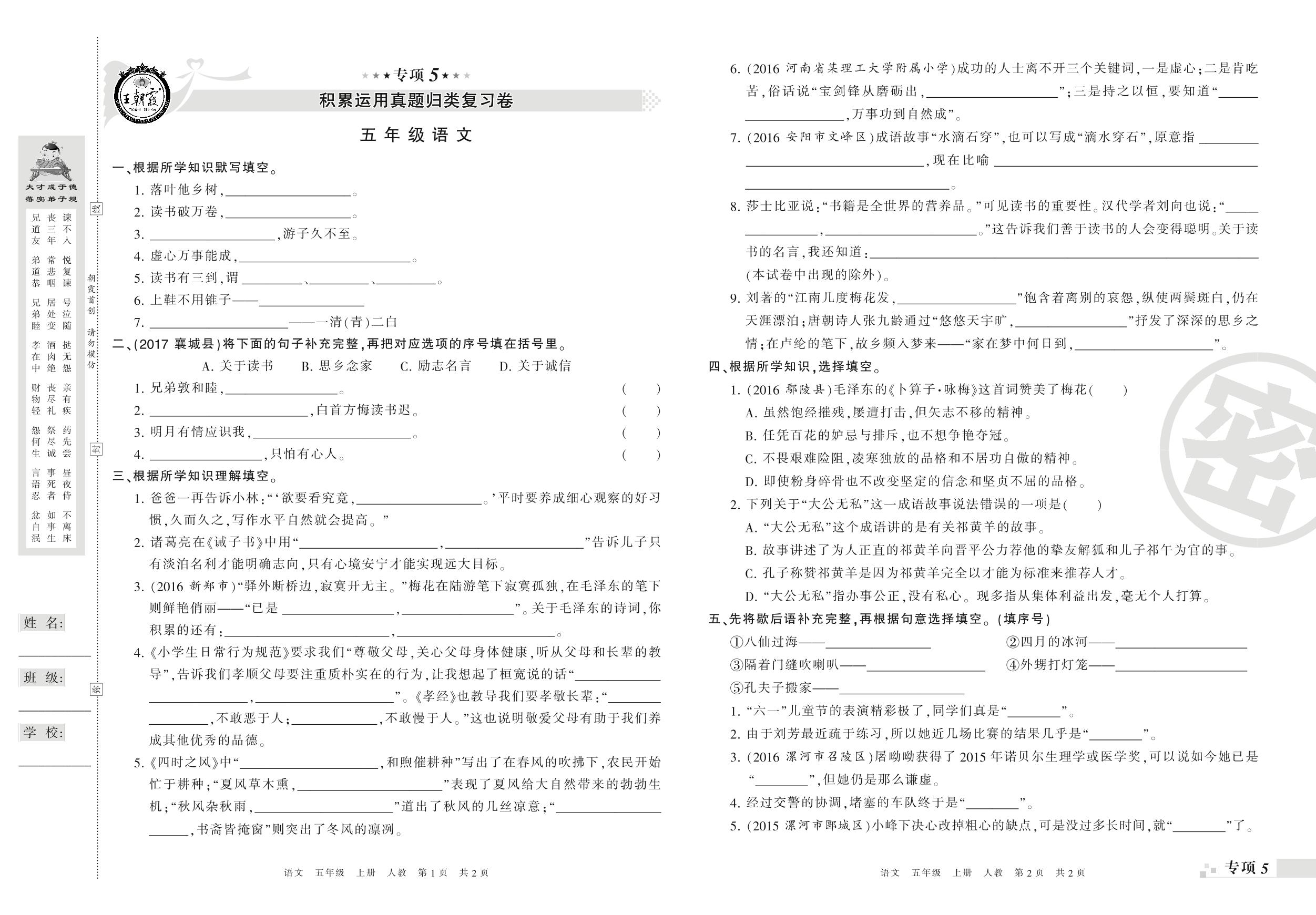王朝霞期末专项卷——积累运用、课内阅读真题归类复习五年级上册语文(人教版)_R210801223052【0】
