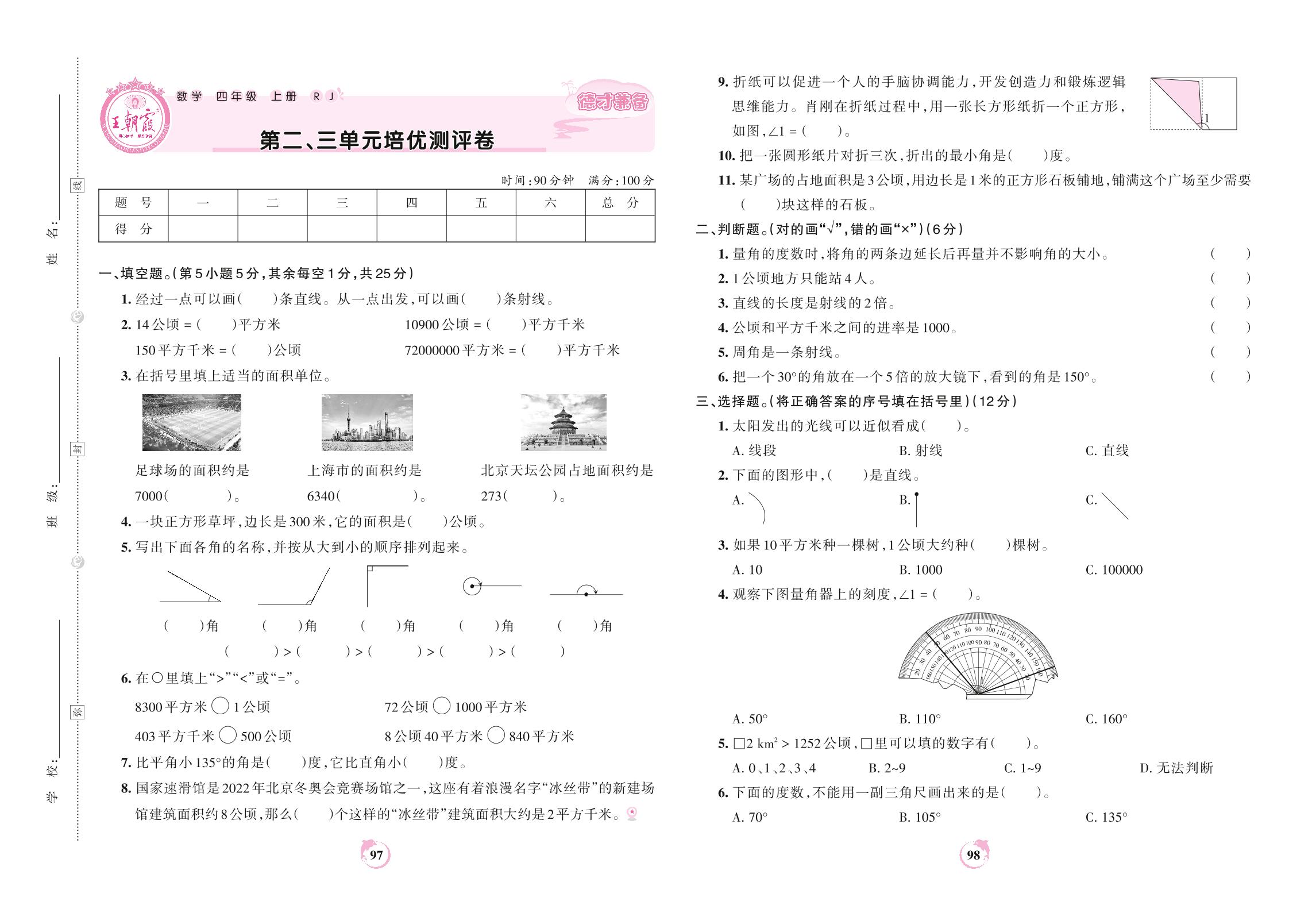 2021上册四年级数学人教版 第二、三单元培优测评卷