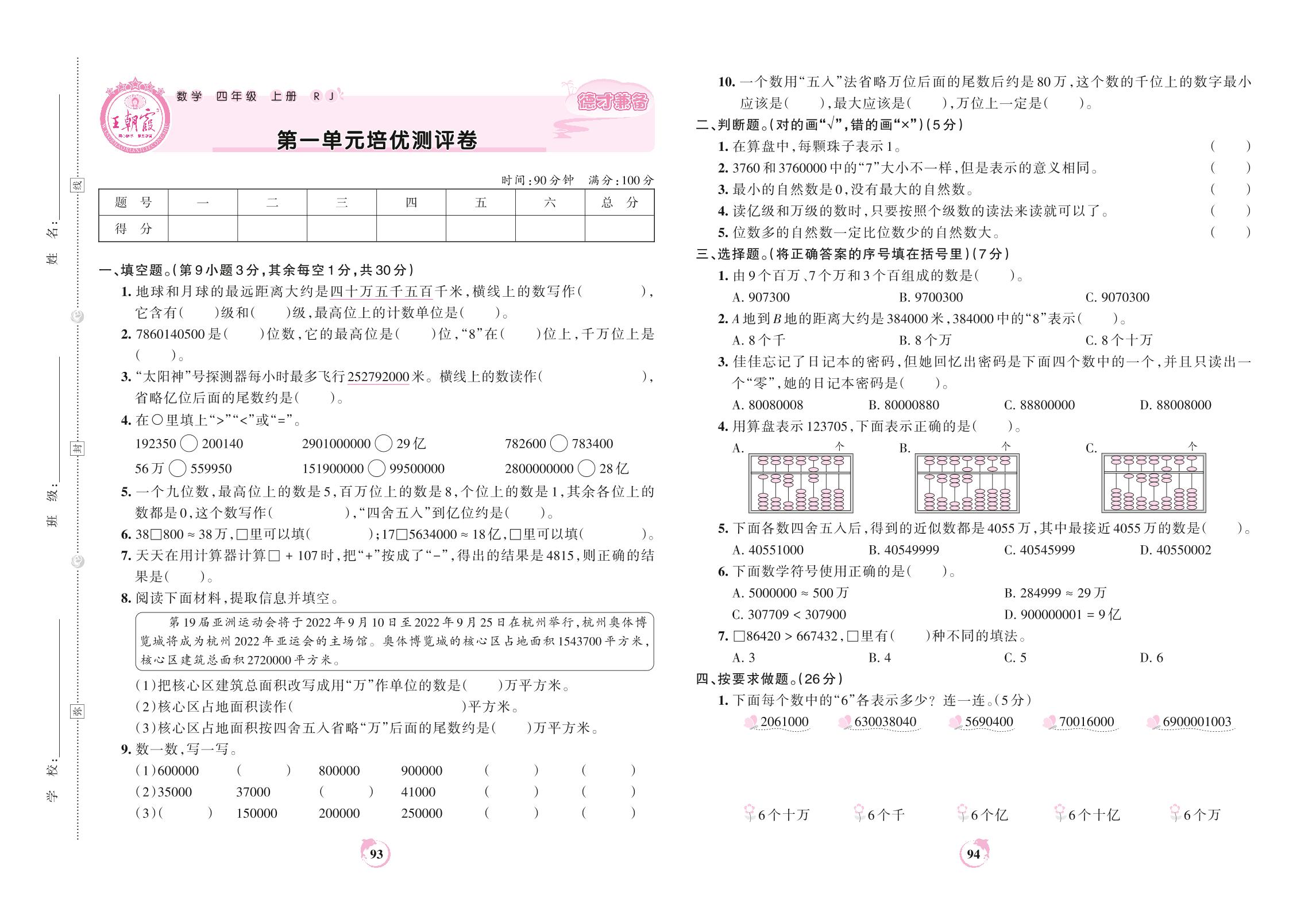 四年级数学人教版上册单元卷