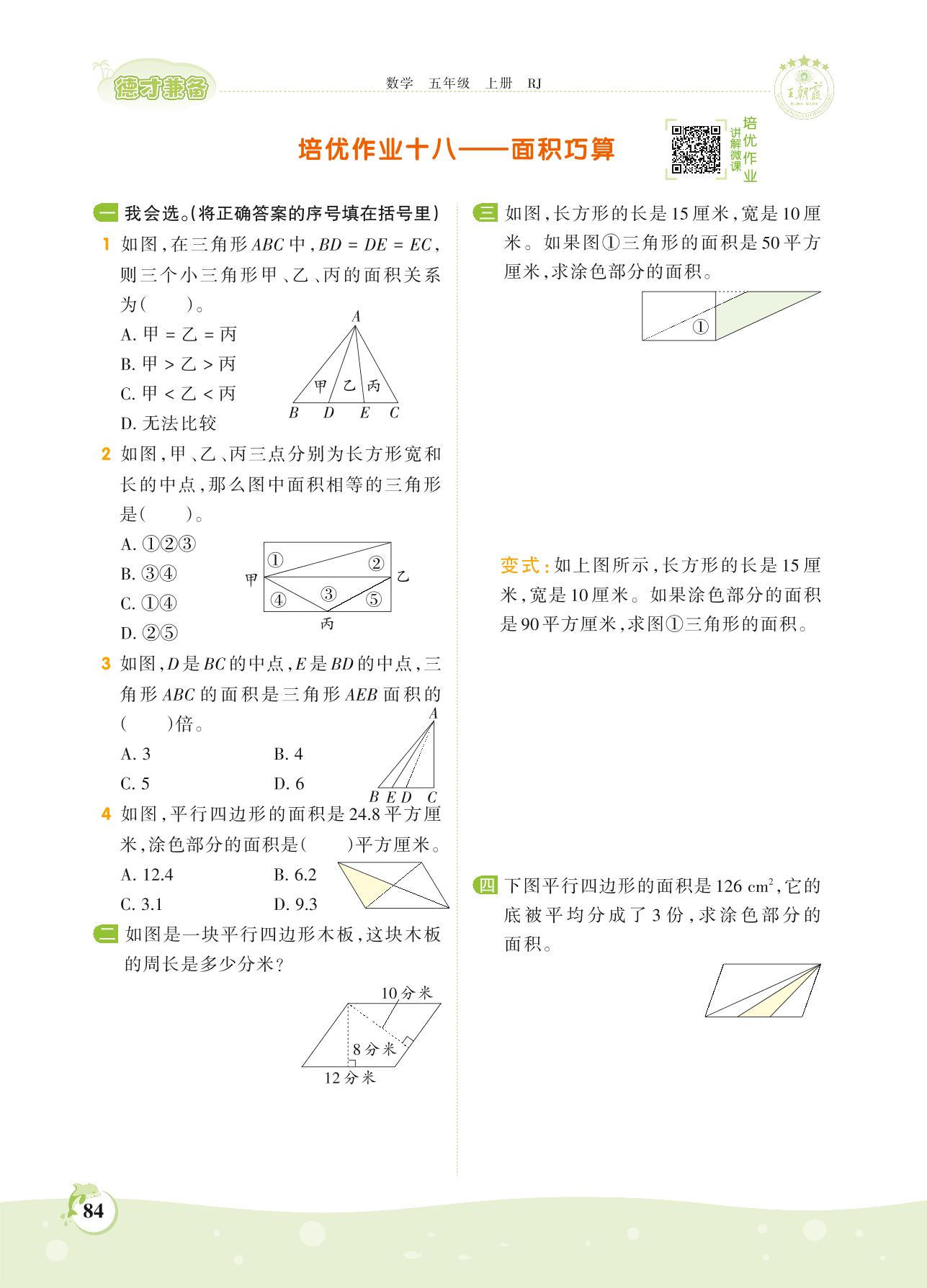 2021上册五年级数学人教版 第六单元 多边形的面积——培优作业十八 面积巧算