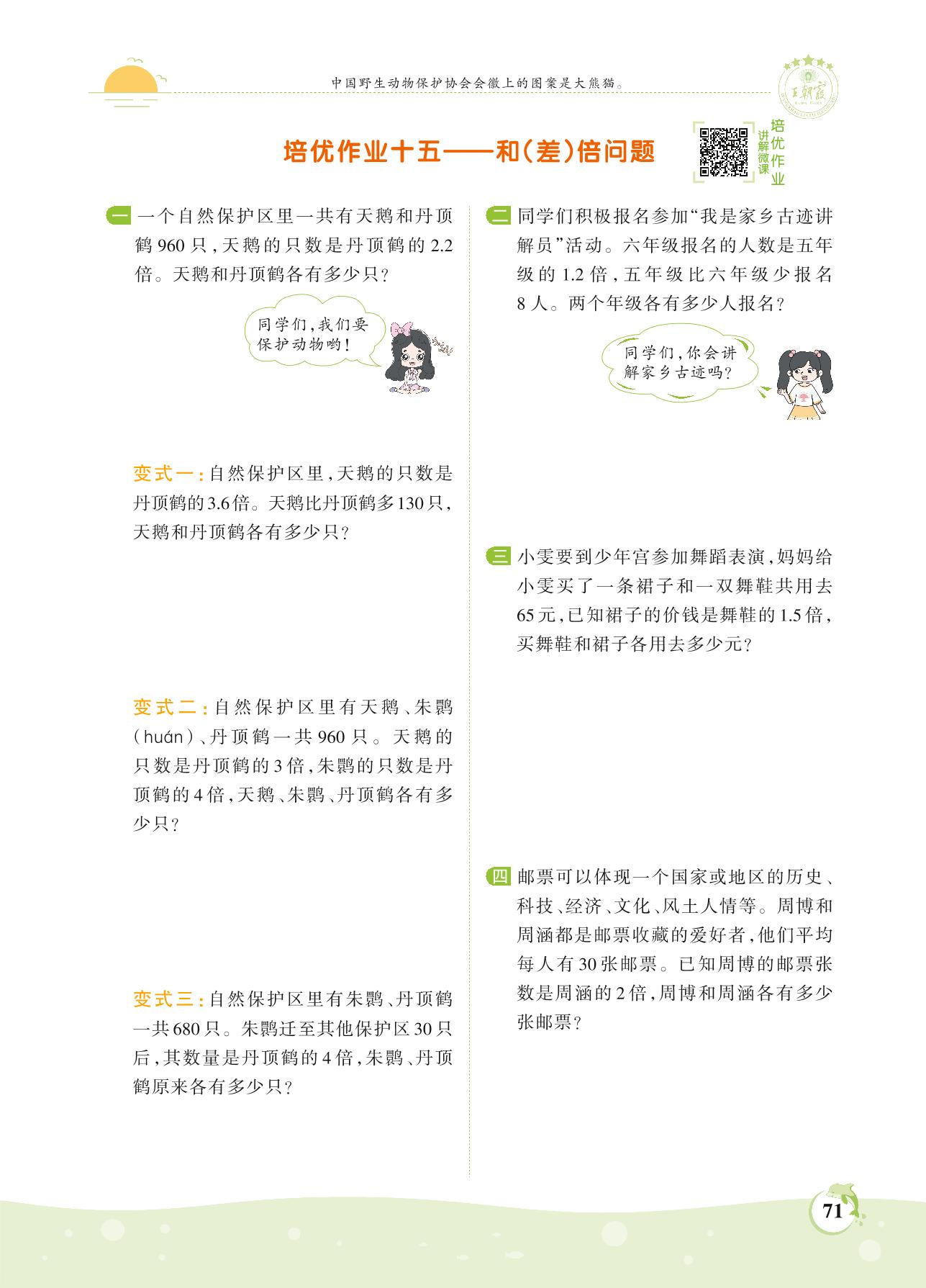 2021上册五年级数学人教版 第五单元 简易方程——培优作业十五 和(差)倍问题