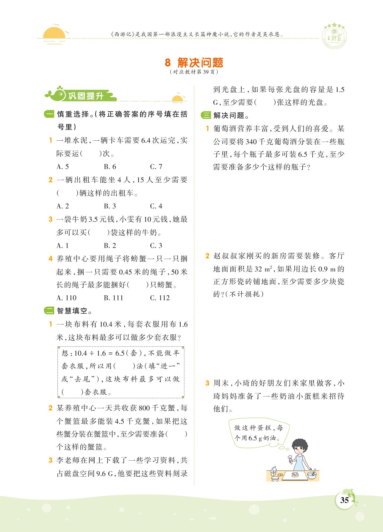 2021上册五年级数学人教版 第三单元 小数除法——8 解决问题