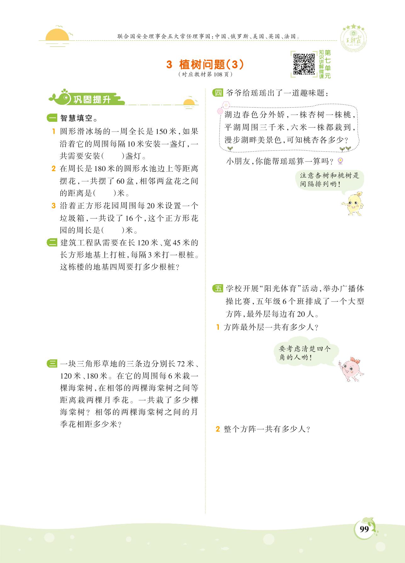 2021上册五年级数学人教版 第七单元 数学广角 植树问题——3 植树问题(3)