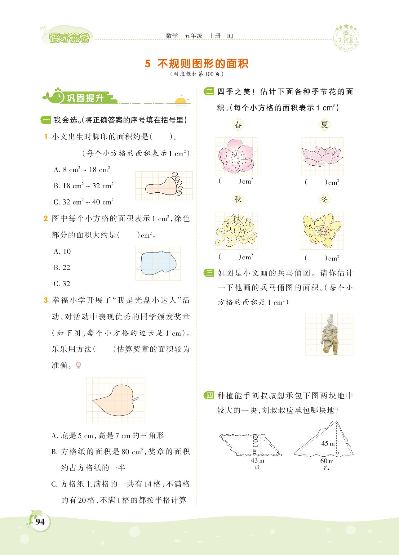 2021上册五年级数学人教版 第六单元 多边形的面积——5 不规则图形的面积