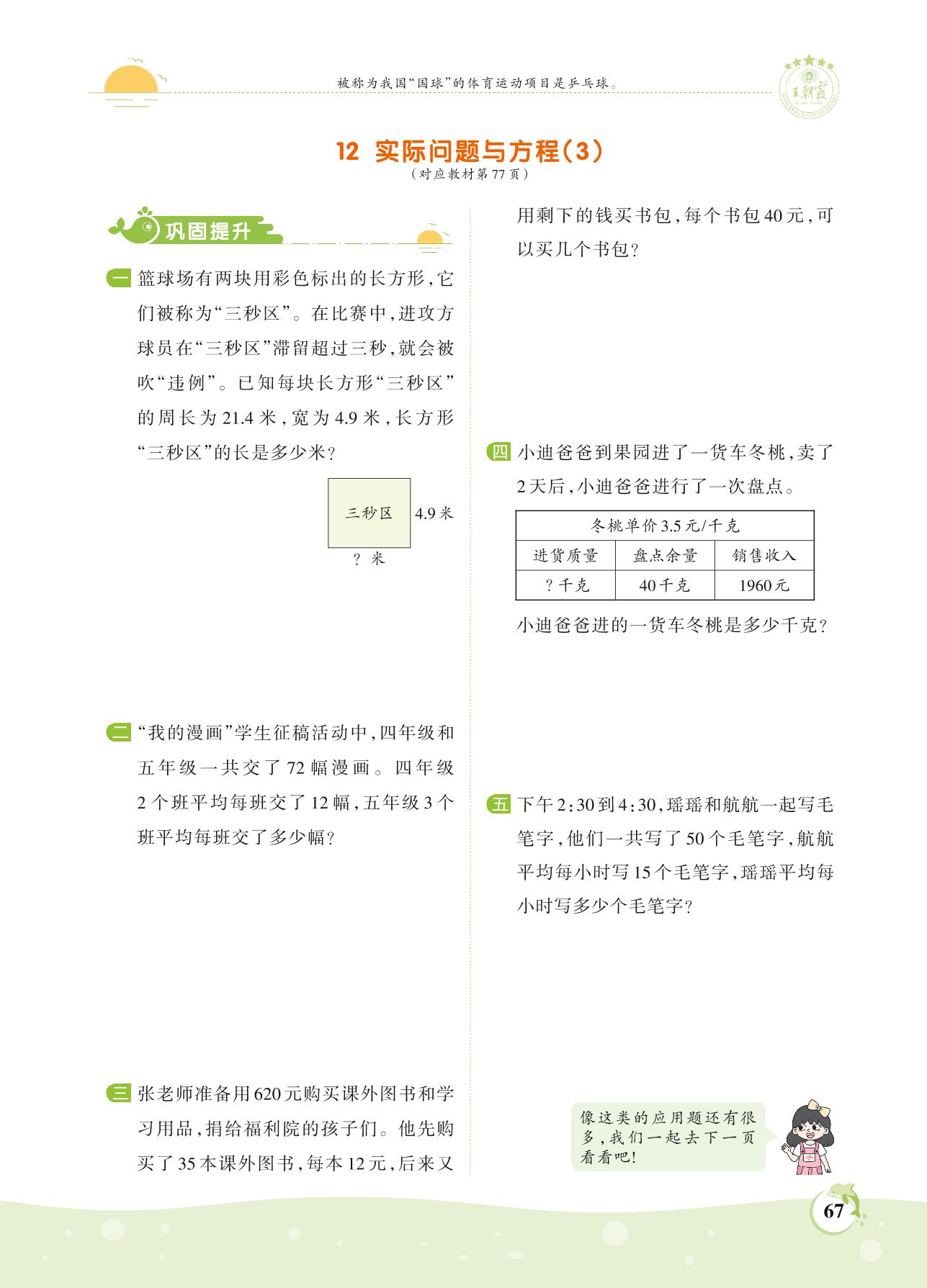 2021上册五年级数学人教版 第五单元 简易方程——12 实际问题与方程(3)