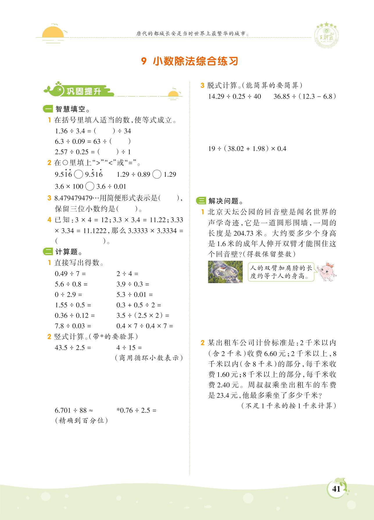 2021上册五年级数学人教版 第三单元 小数除法——9 小数除法综合练习