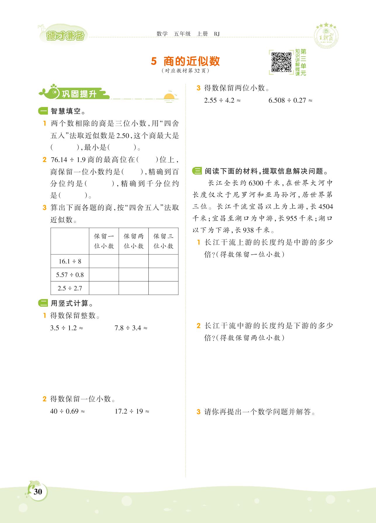2021上册五年级数学人教版 第三单元 小数除法——5 商的近似数