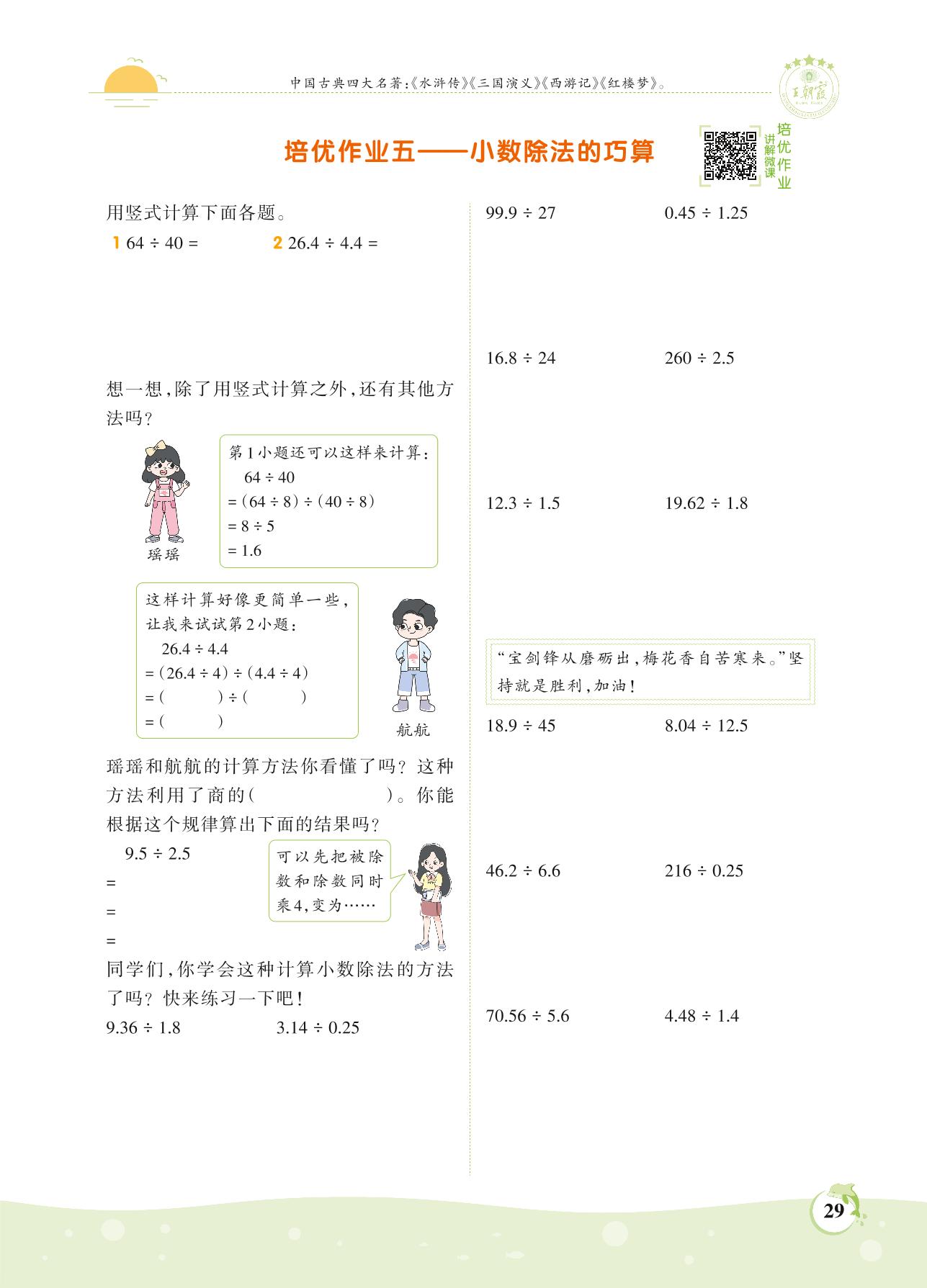 2021上册五年级数学人教版 第三单元 小数除法——培优作业五 小数除法的巧算
