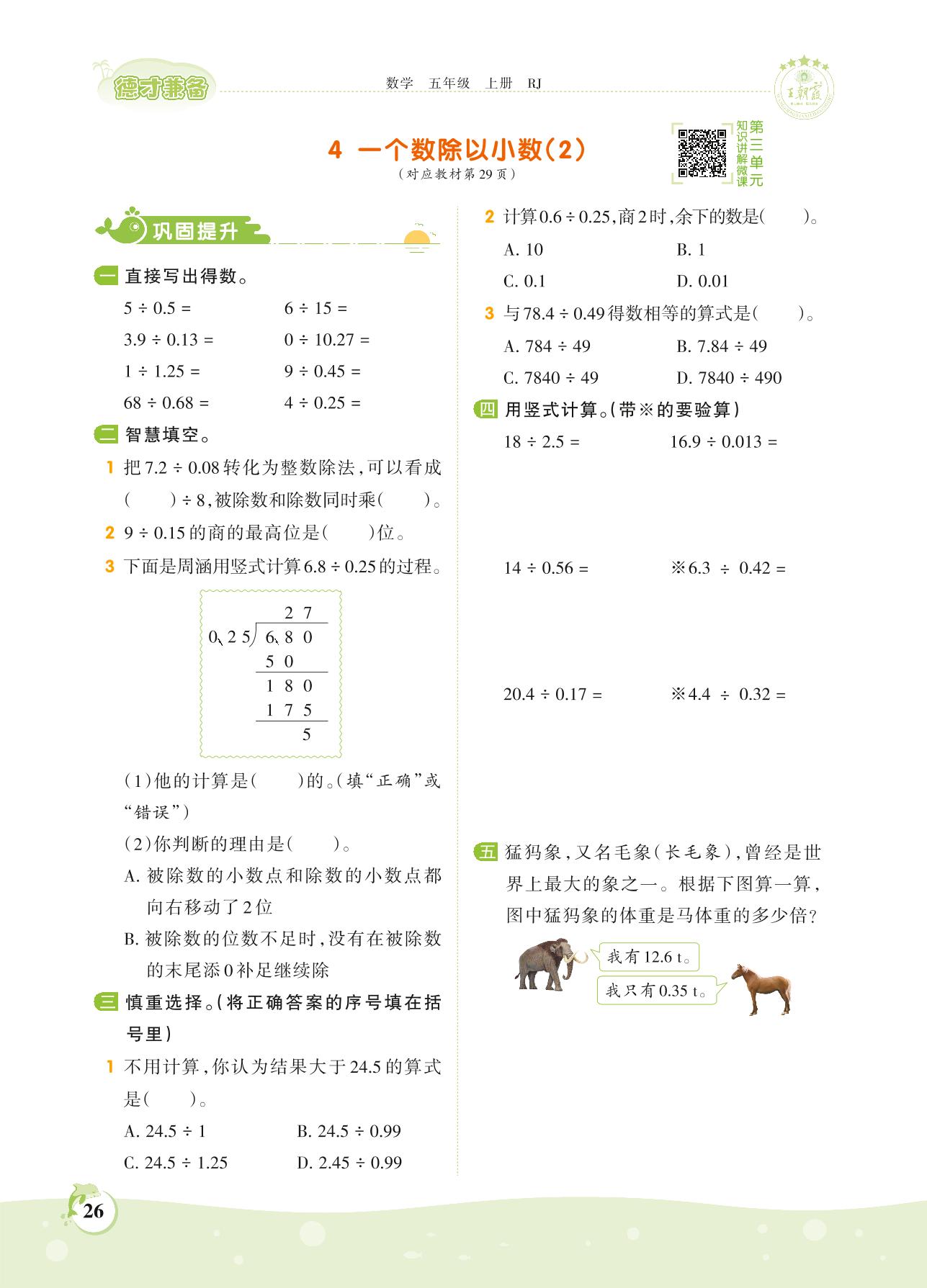 2021上册五年级数学人教版 第三单元 小数除法——4 一个数除以小数(2)