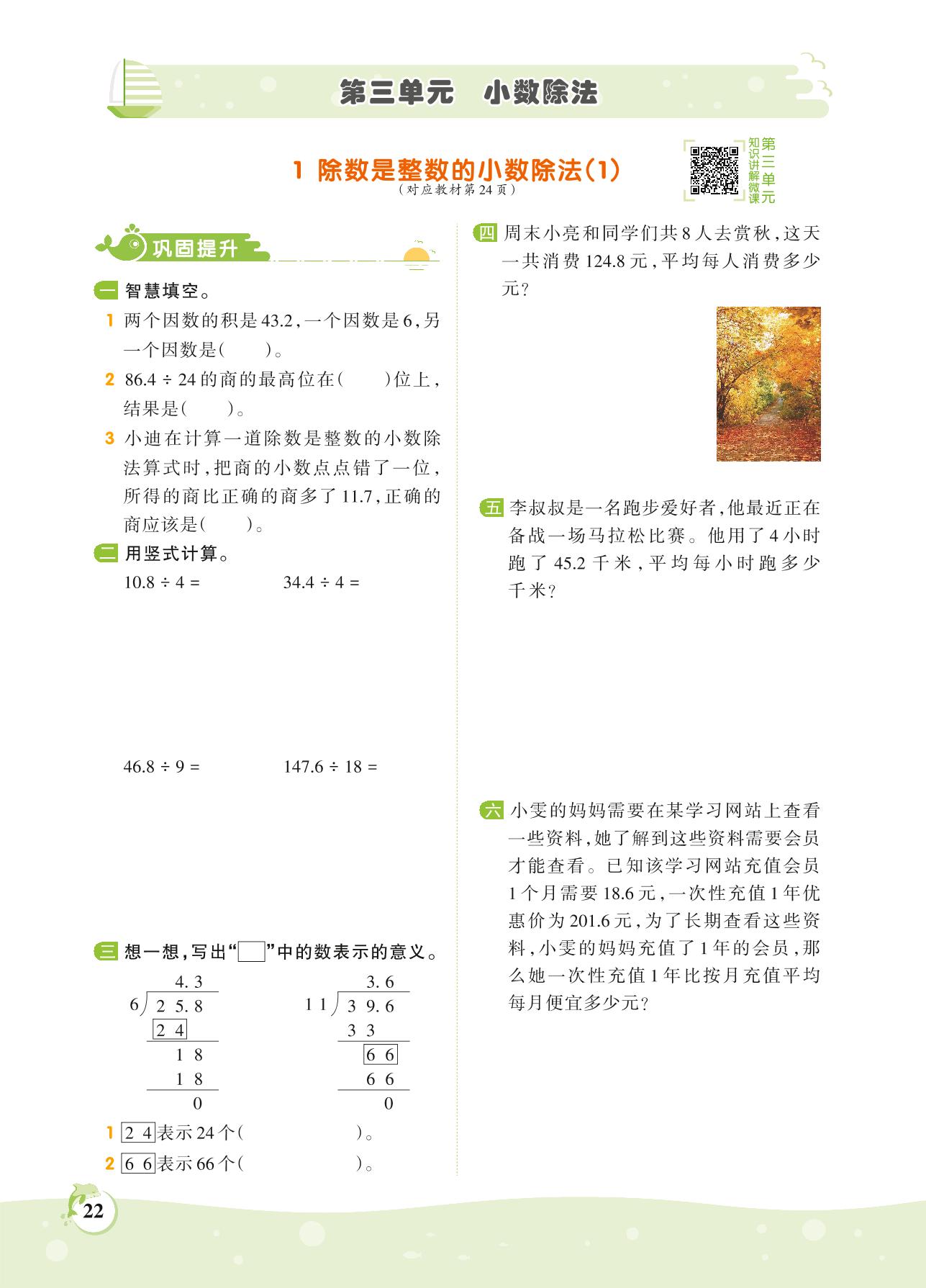2021上册五年级数学人教版 第三单元 小数除法——1 除数是整数的小数除法(1)