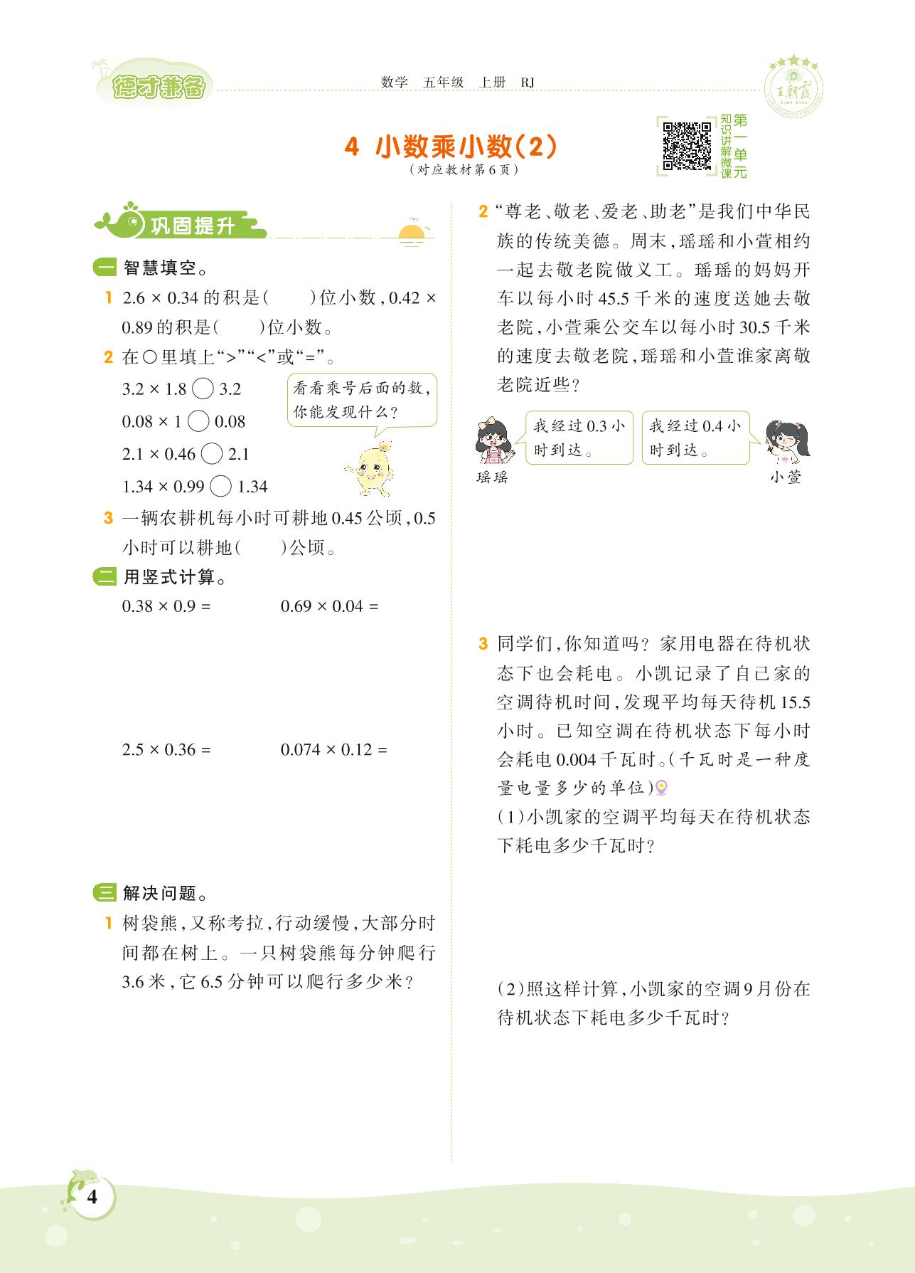 2021上册五年级数学人教版 第一单元 小数乘法——4 小数乘小数(2)