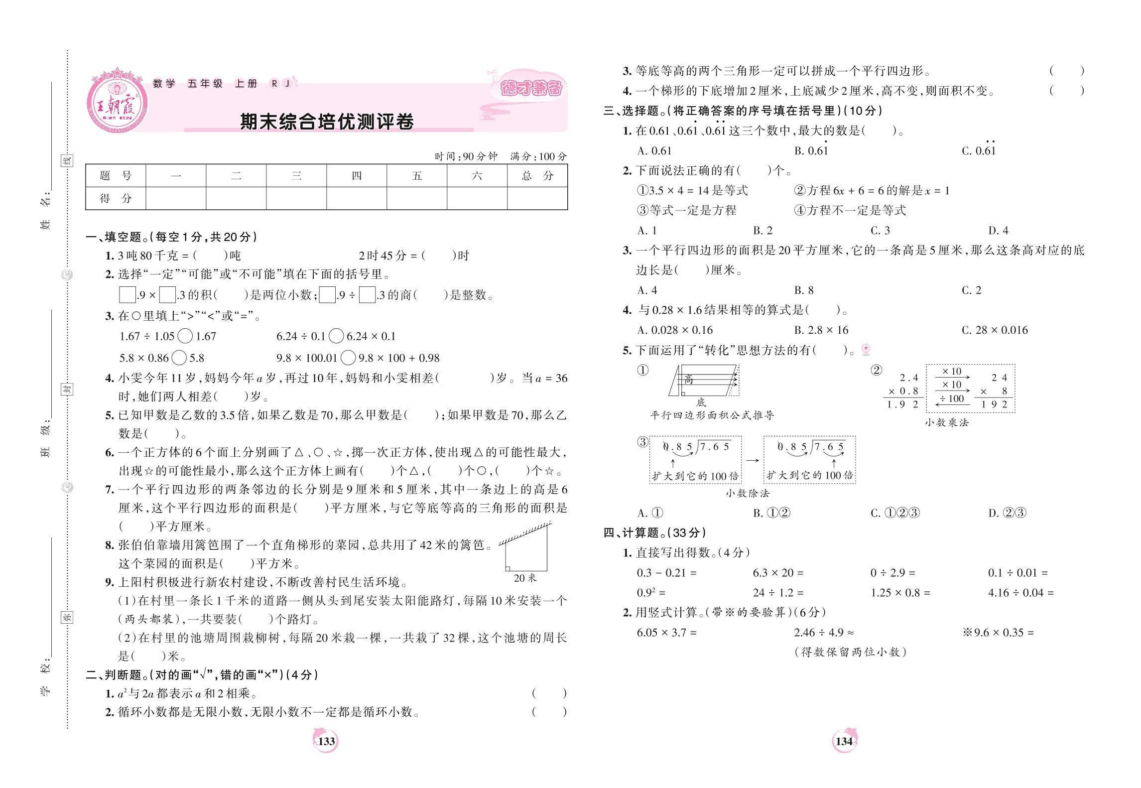 2021上册五年级数学人教版 期末综合培优测评卷