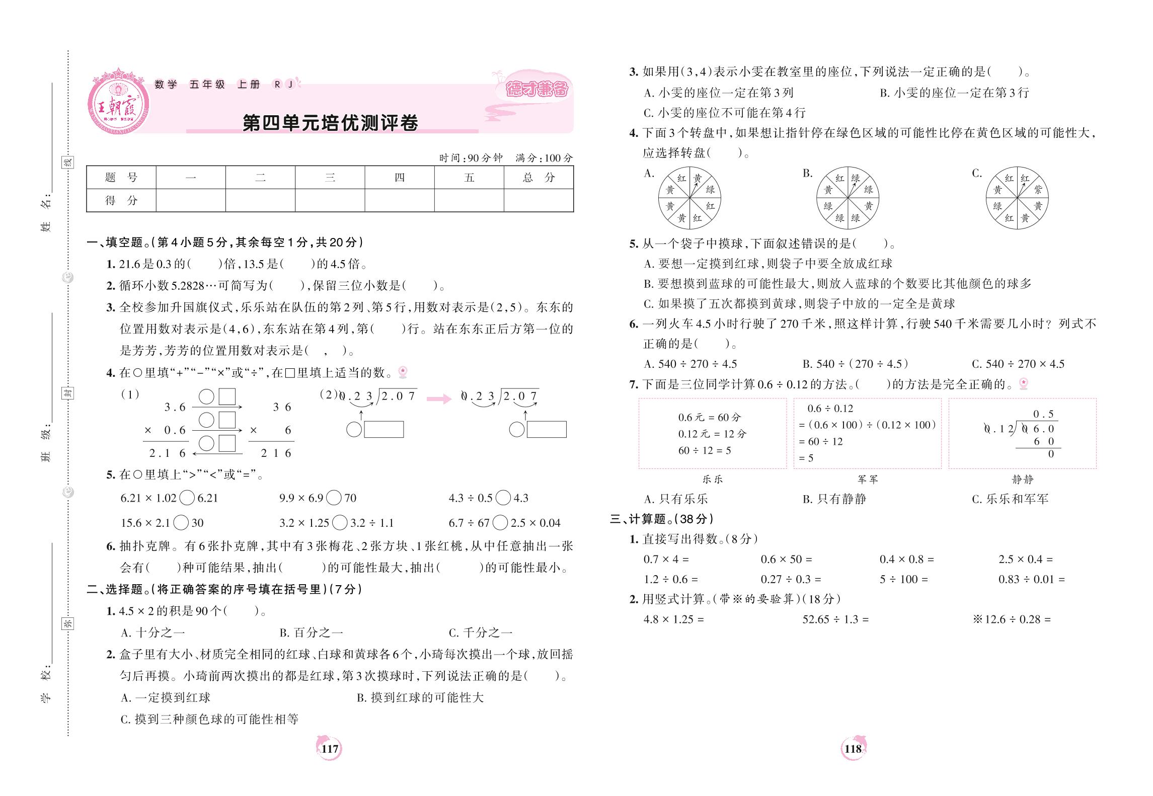 五年级数学人教版上册单元卷