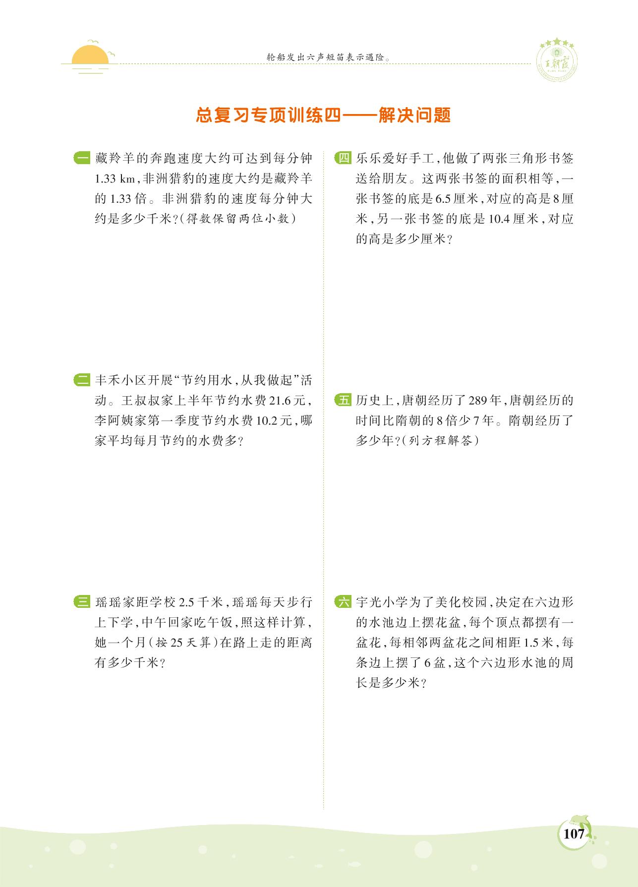 2021上册五年级数学人教版 第八单元 总复习——解决问题