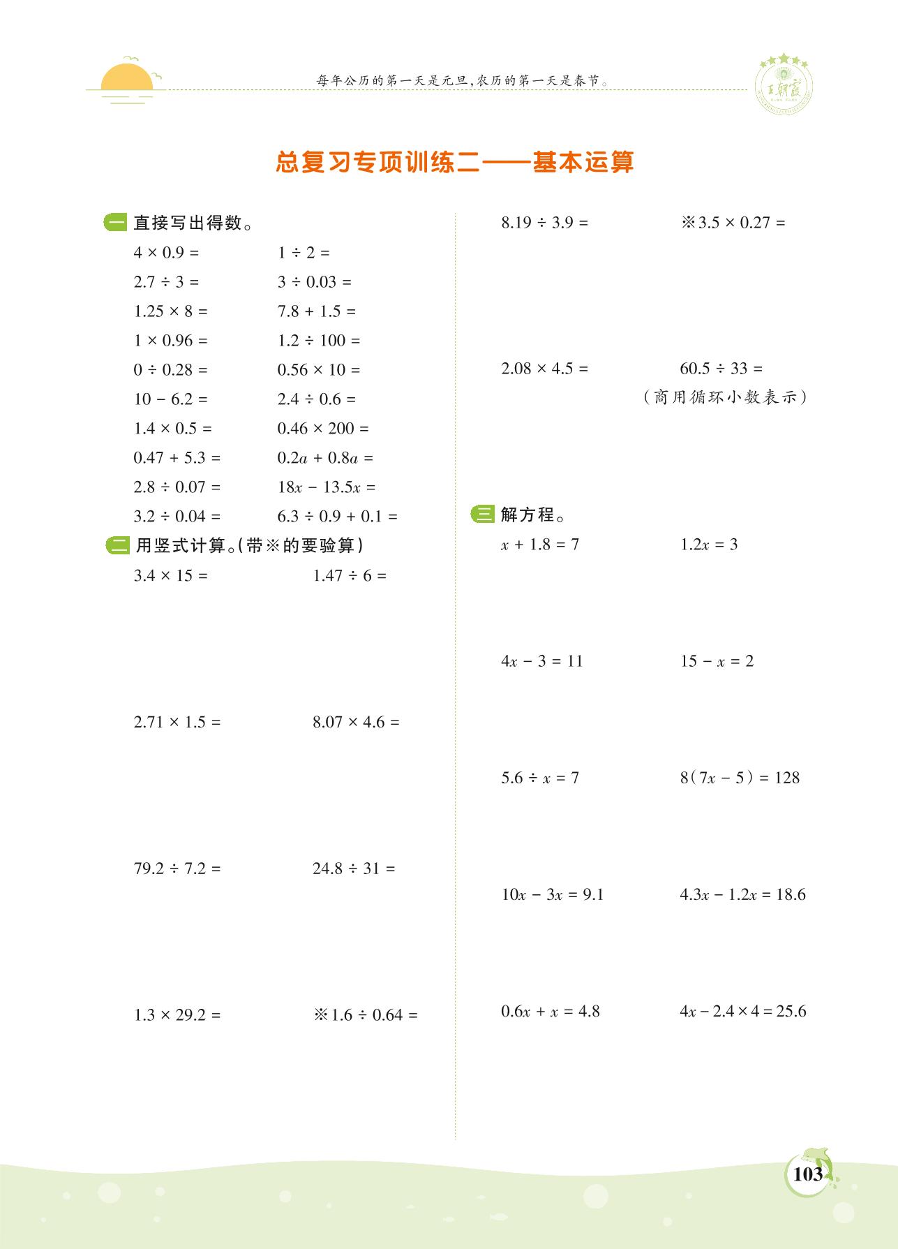 2021上册五年级数学人教版 第八单元 总复习——基本运算