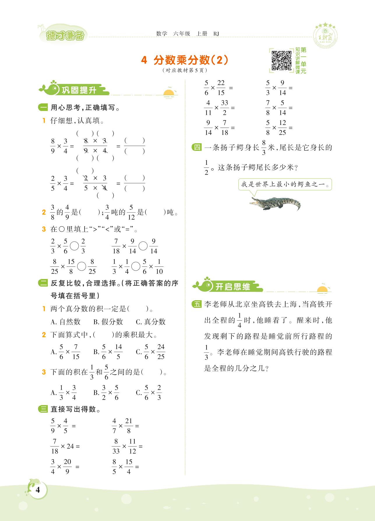 2021上册六年级数学人教版 第一单元 分数乘法——4 分数乘分数(2)