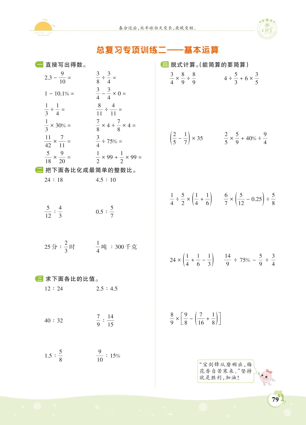 2021上册六年级数学人教版 第九单元 总复习——基本运算