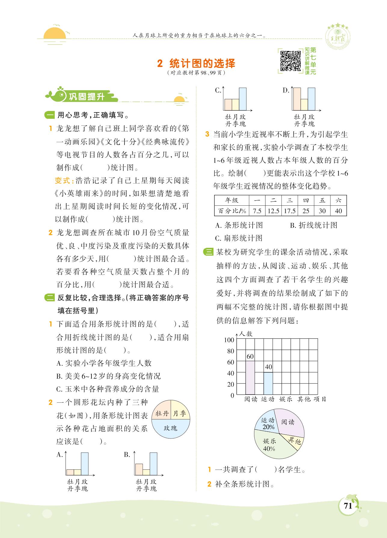 2021上册六年级数学人教版 第七单元 扇形统计图——2 统计图的选择