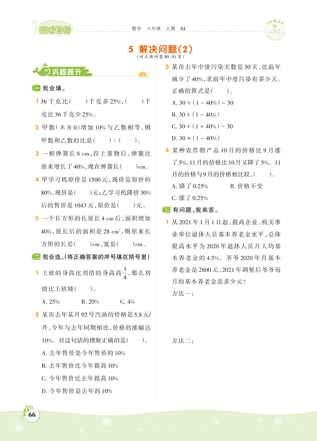 2021上册六年级数学人教版 第六单元 百分数(一)——5 解决问题(2)