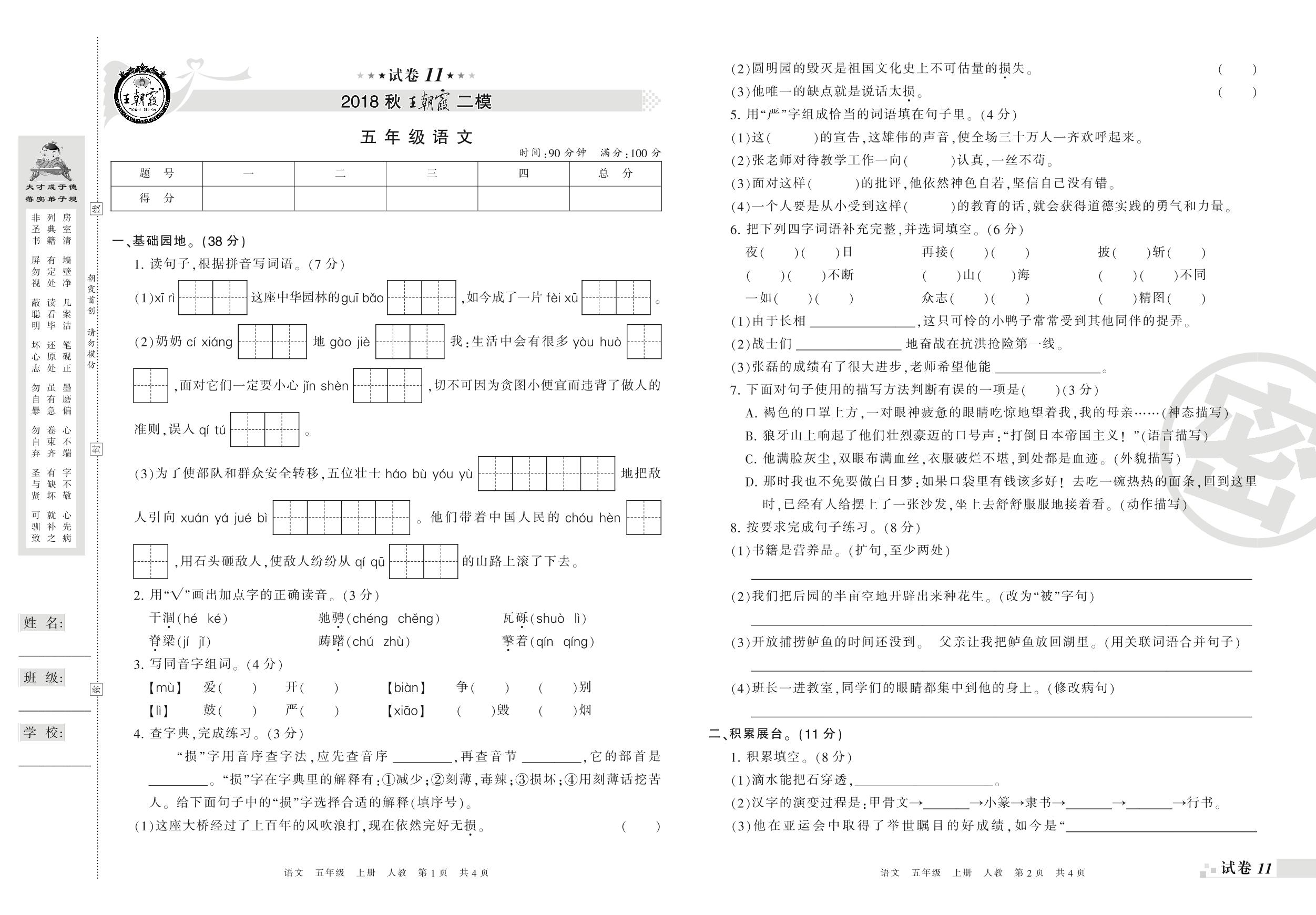 王朝霞期末模拟卷五年级上册语文(人教版)_R210801223216【11】