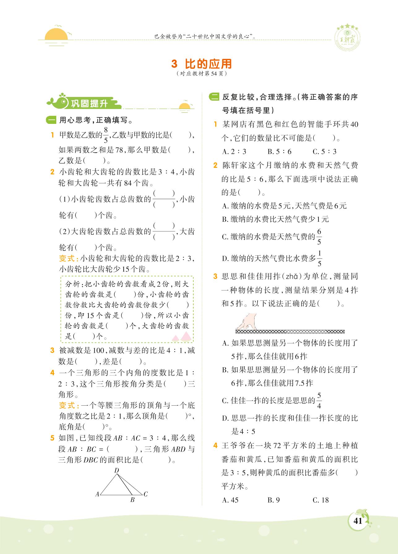 2021上册六年级数学人教版 第四单元 比——3 比的应用