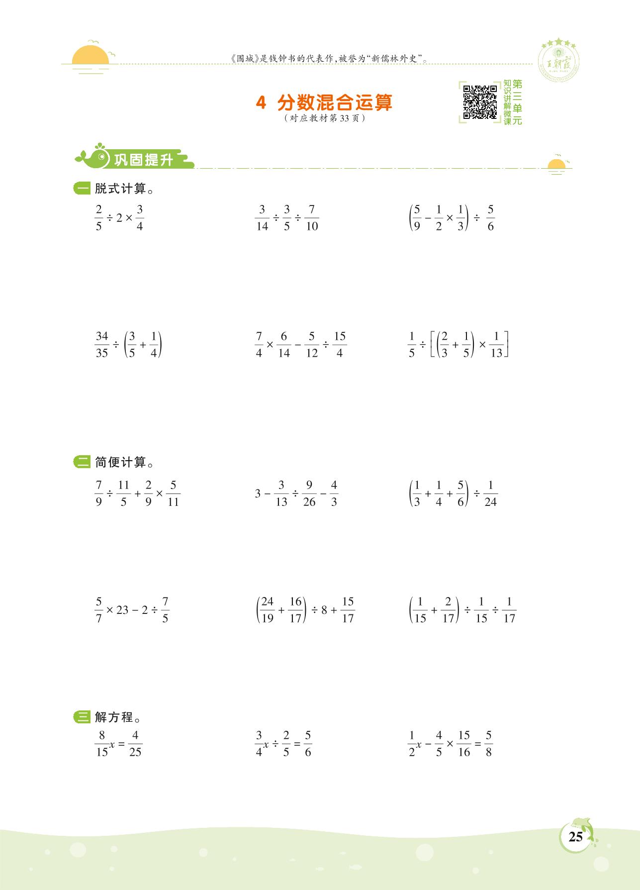 2021上册六年级数学人教版 第三单元 分数除法——4 分数混合运算