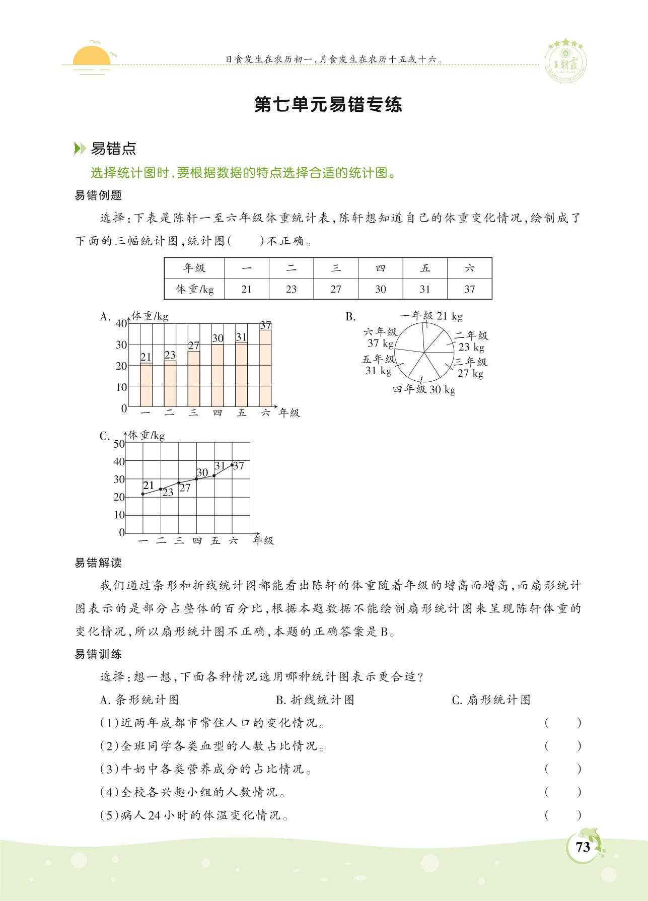 2021上册六年级数学人教版 第七单元 扇形统计图——第七单元易错专练