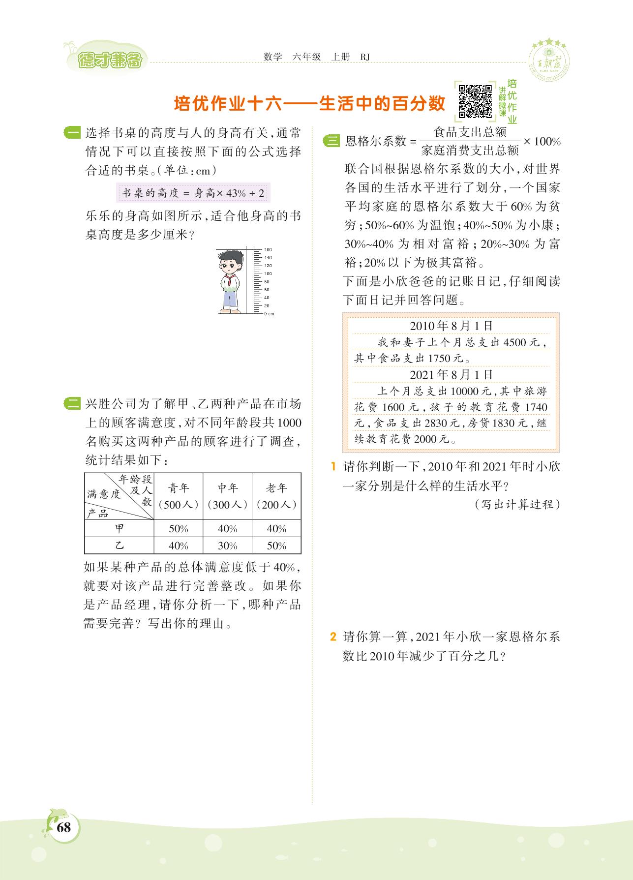 2021上册六年级数学人教版 第六单元 百分数(一)——培优作业十六 生活中的百分数