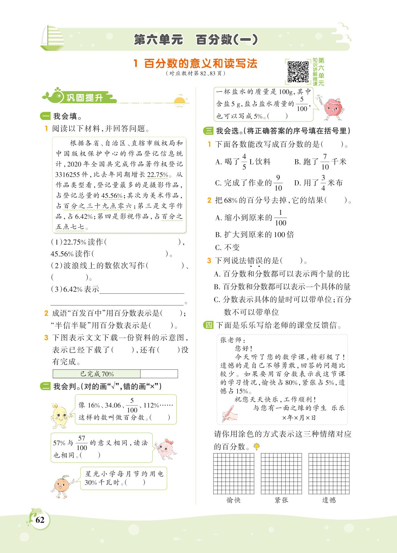 2021上册六年级数学人教版 第六单元 百分数(一)——1 百分数的意义和读写法
