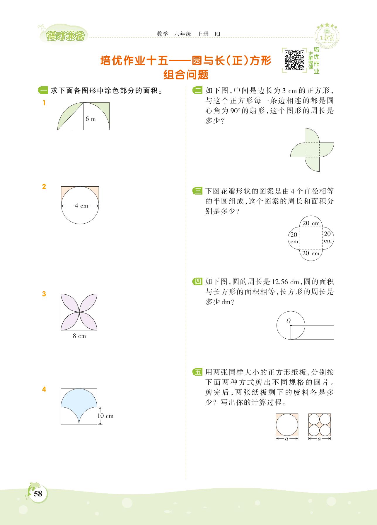 2021上册六年级数学人教版 第五单元 圆——培优作业十五 圆与长(正)方形组合问题