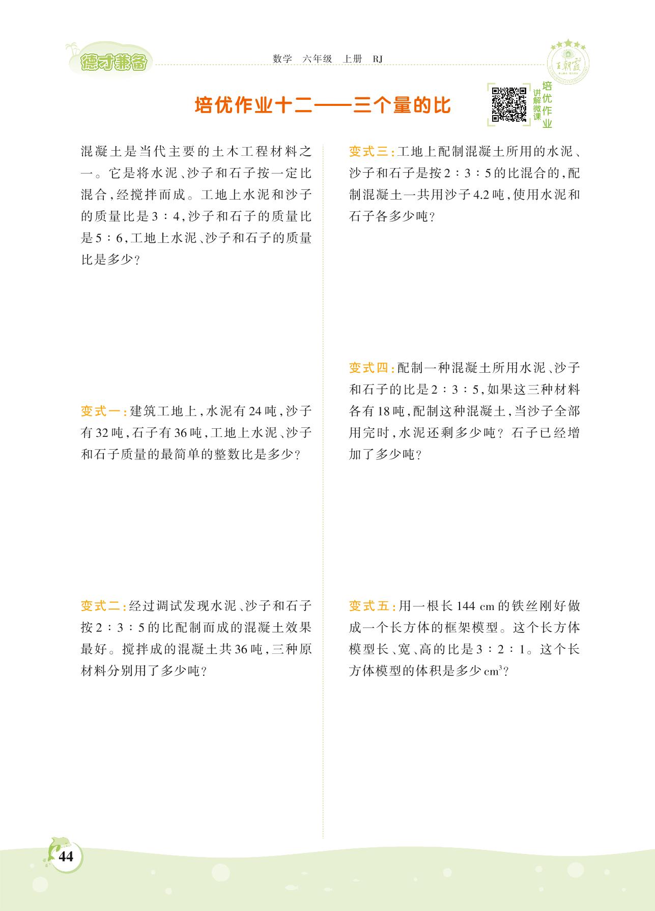 2021上册六年级数学人教版 第四单元 比——培优作业十二 三个量的比