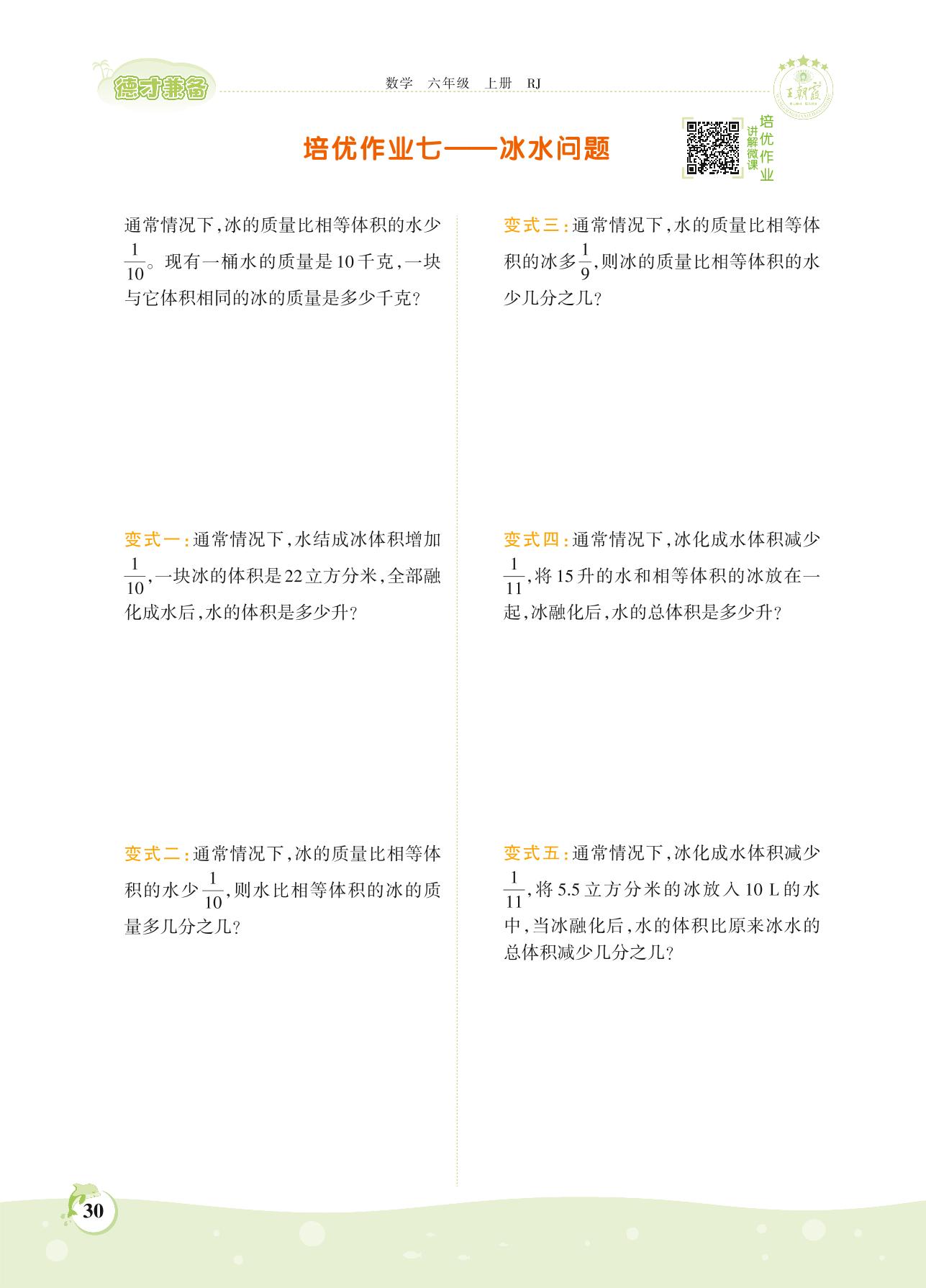 2021上册六年级数学人教版 第三单元 分数除法——培优作业七 冰水问题