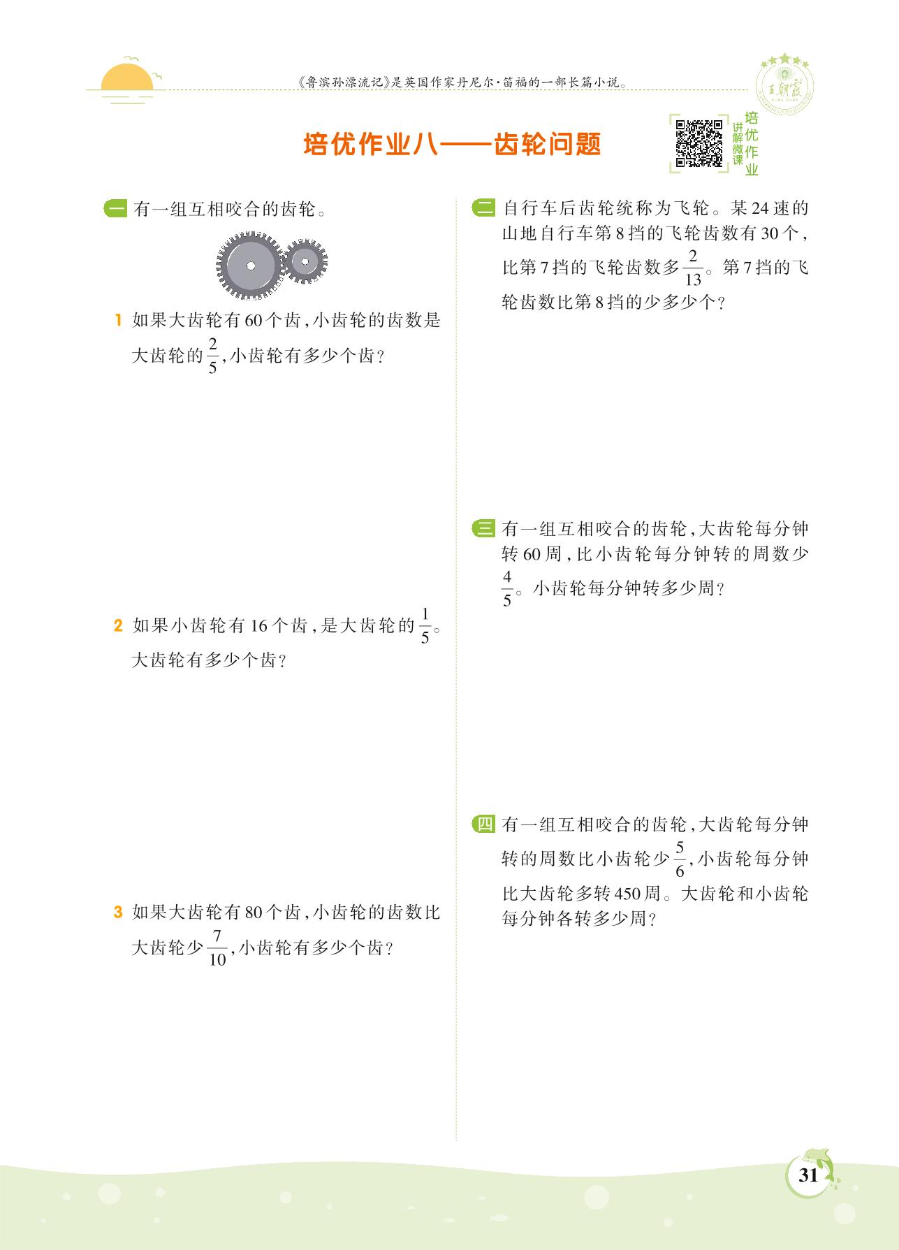 2021上册六年级数学人教版 第三单元 分数除法——培优作业八 齿轮问题