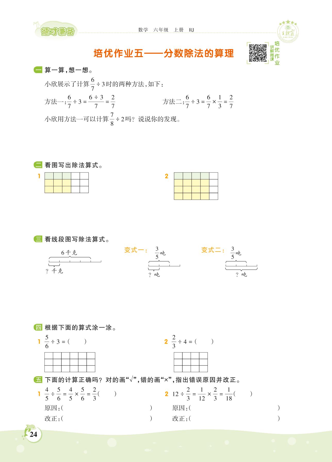 2021上册六年级数学人教版 第三单元 分数除法——培优作业五 分数除法的算理