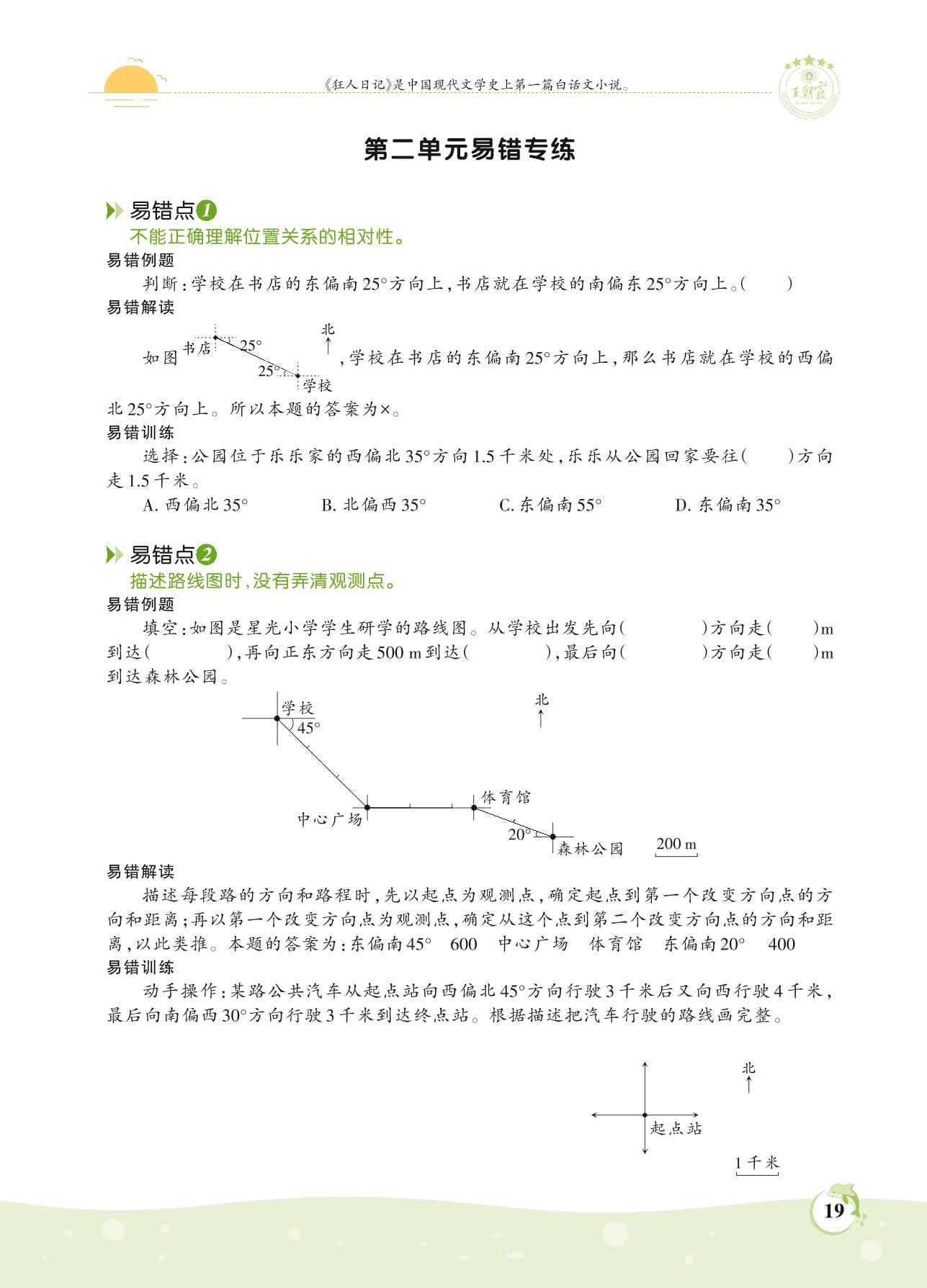 2021上册六年级数学人教版 第二单元 位置与方向(二)——第二单元易错专练