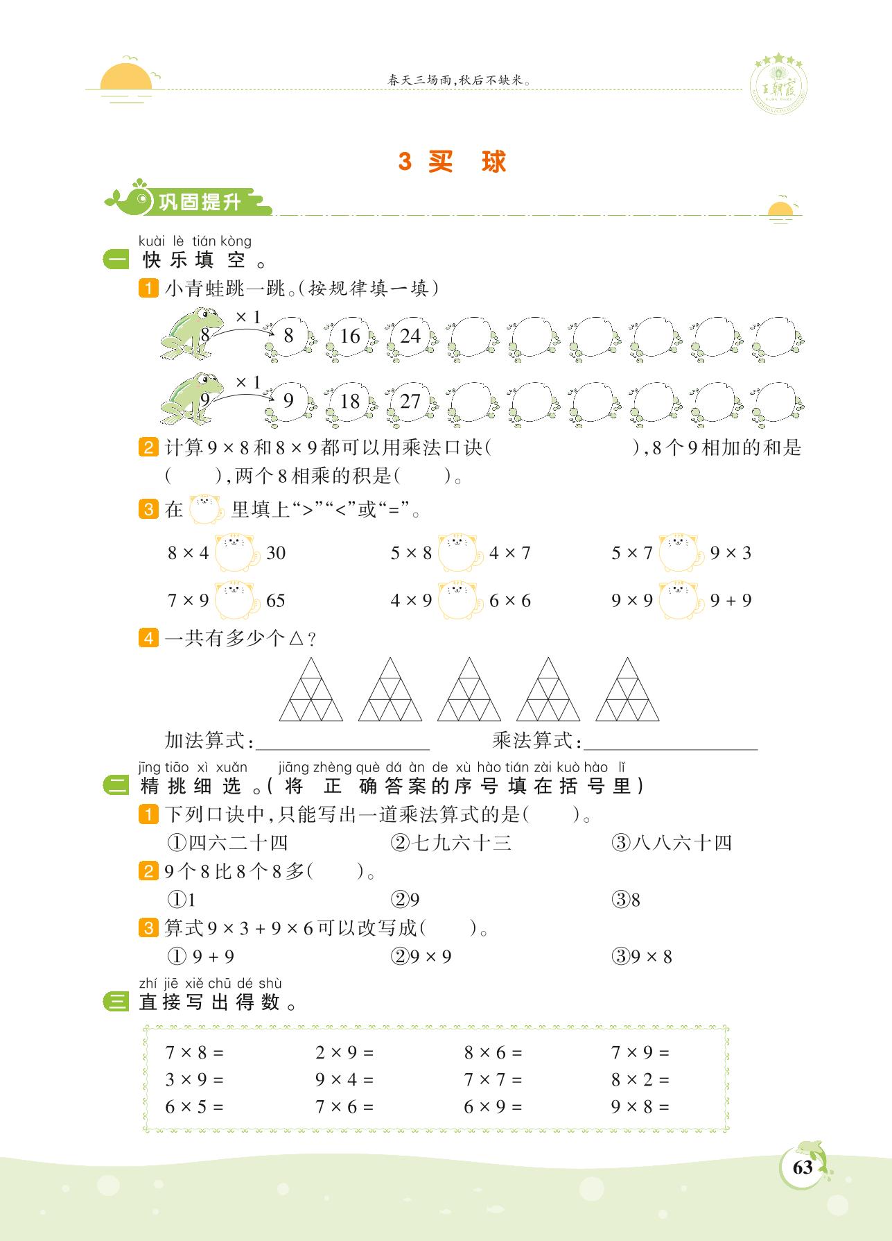 2021上册二年级数学北师版 第八单元 6~9的乘法口诀——3 买球