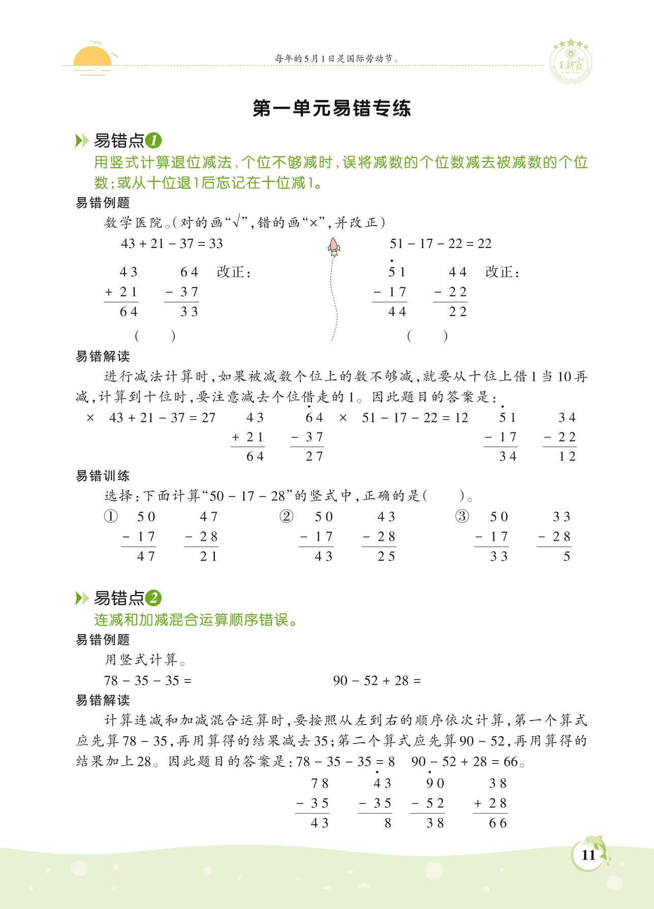 2021上册二年级数学北师版 第一单元 加与减——第一单元易错专练