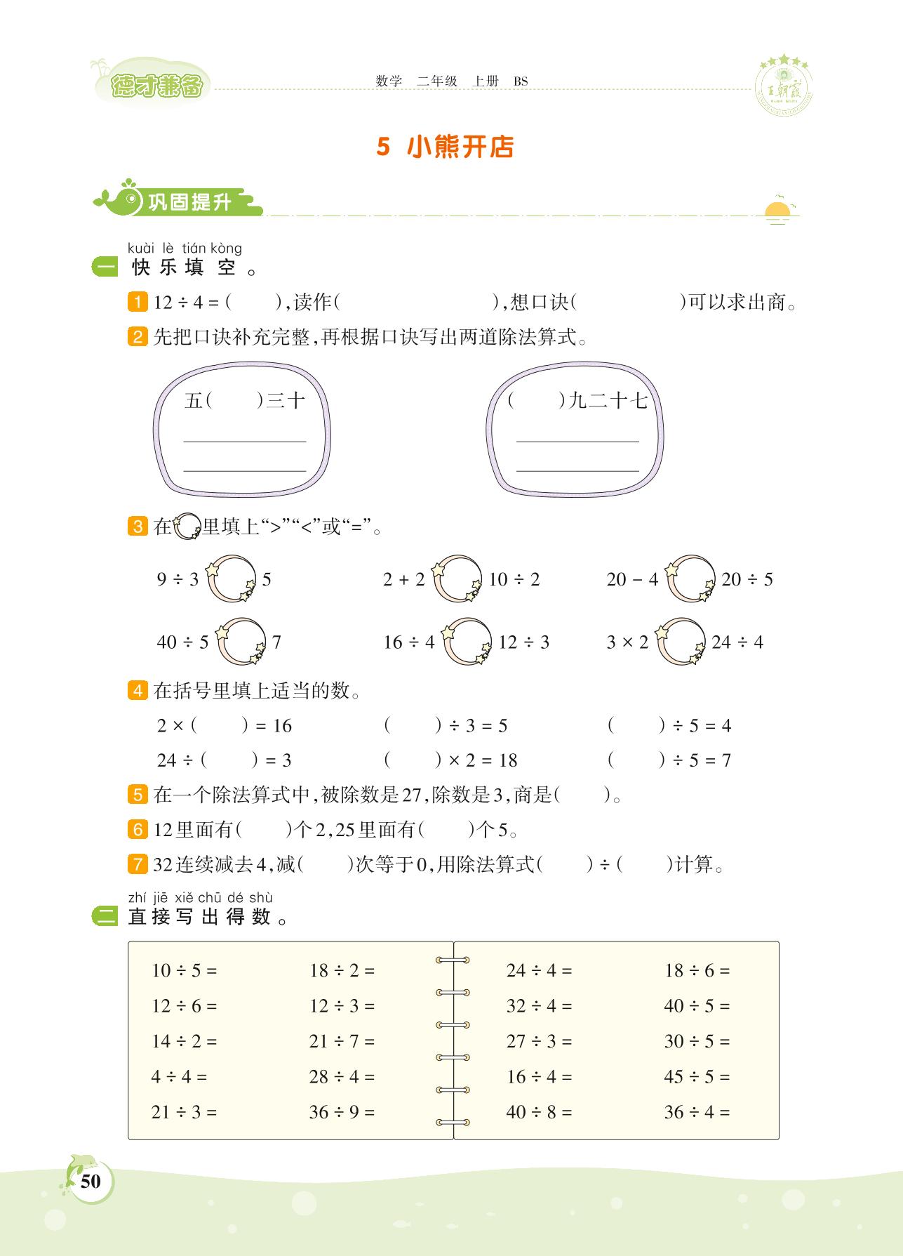 2021上册二年级数学北师版 第七单元 分一分与除法——5 小熊开店