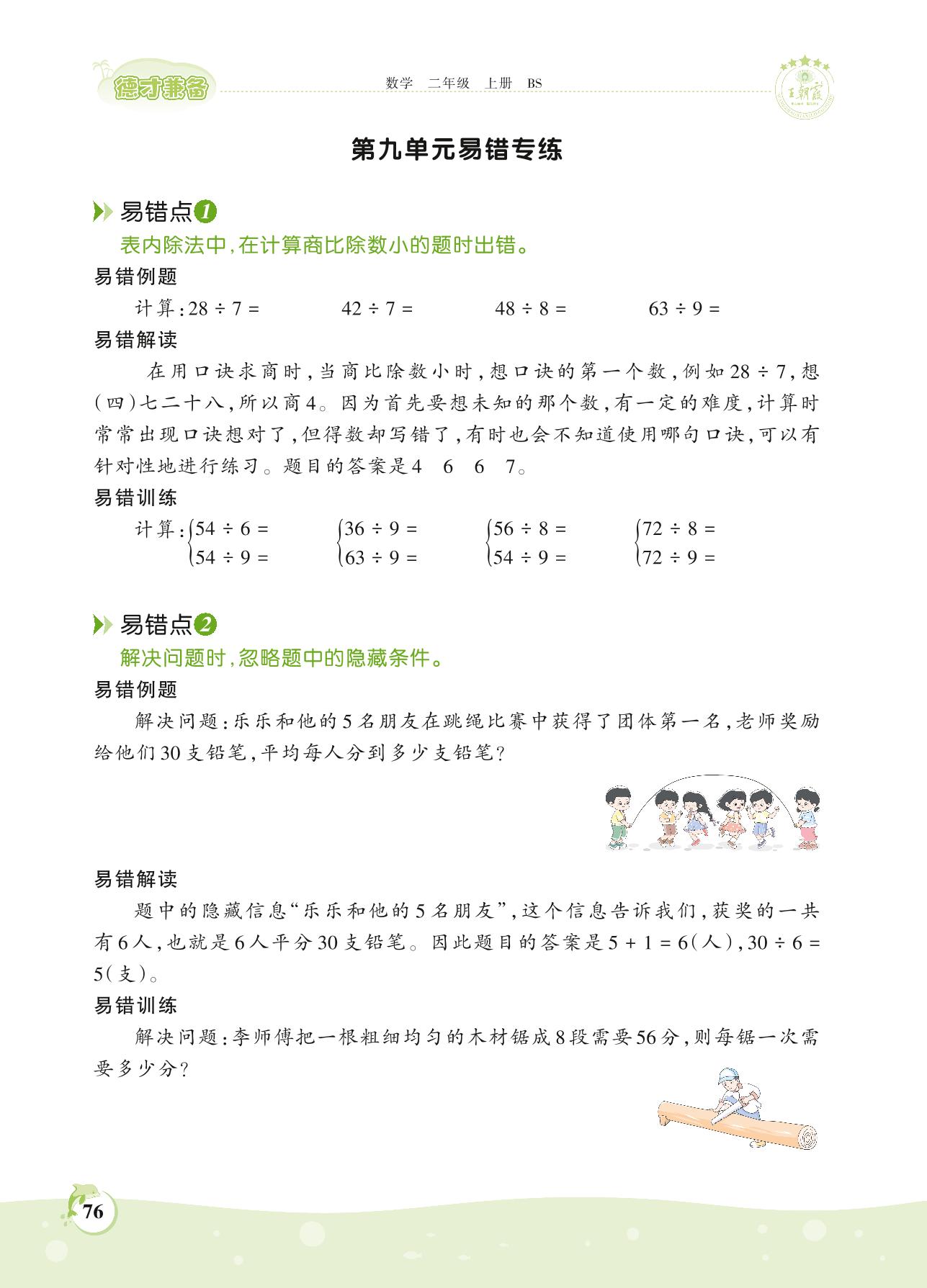 2021上册二年级数学北师版 第九单元 除法——第九单元易错专练