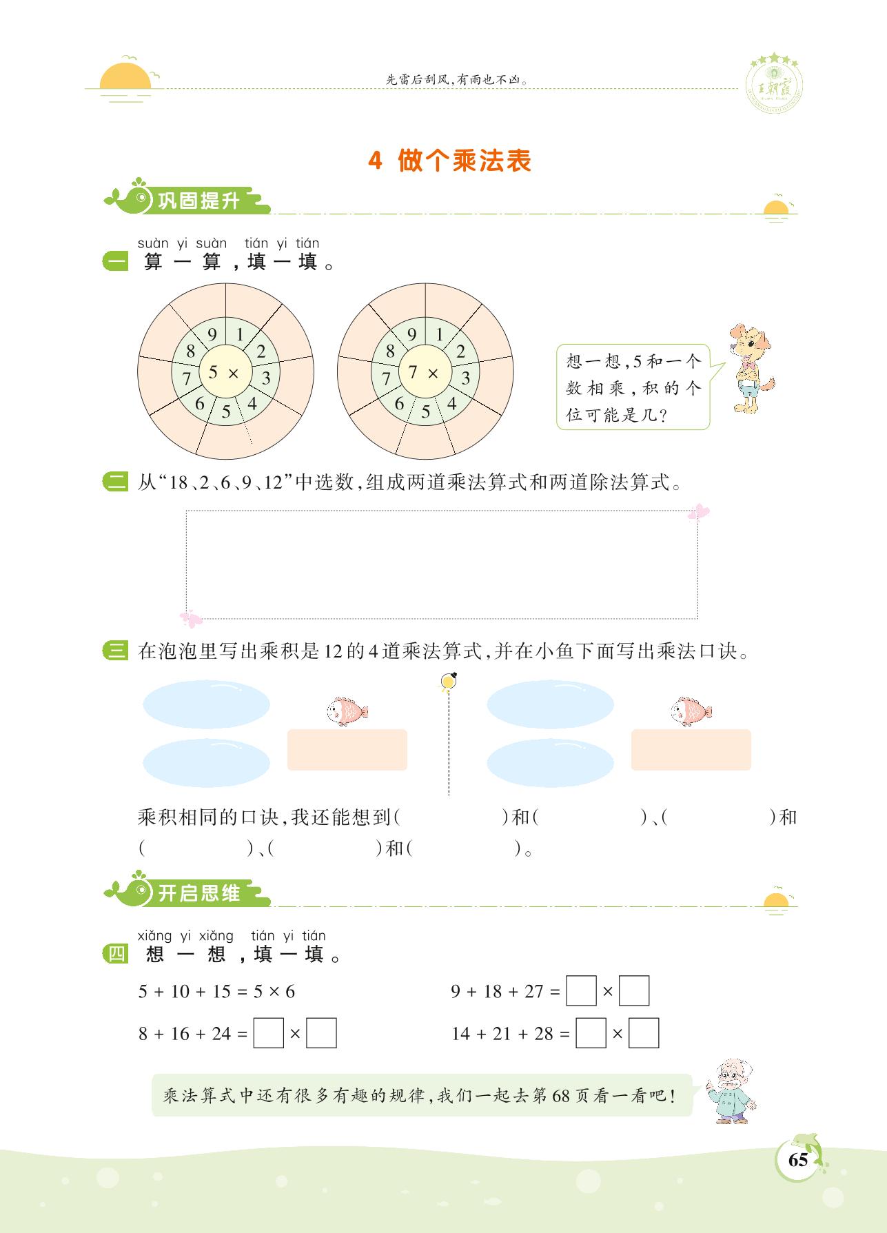 2021上册二年级数学北师版 第八单元 6~9的乘法口诀——4 做个乘法表