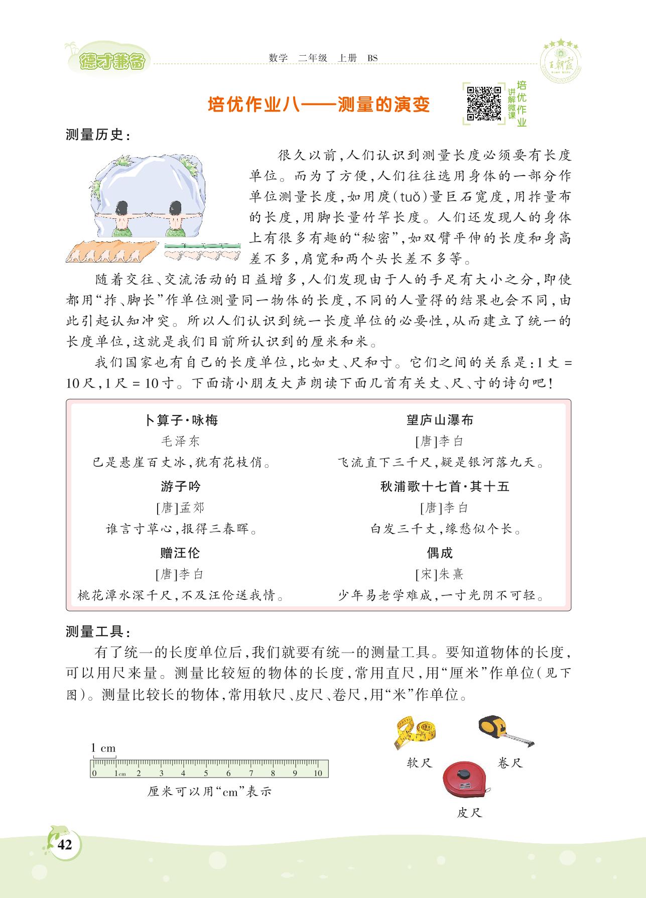 2021上册二年级数学北师版 第六单元 测量——培优作业八 测量的演变