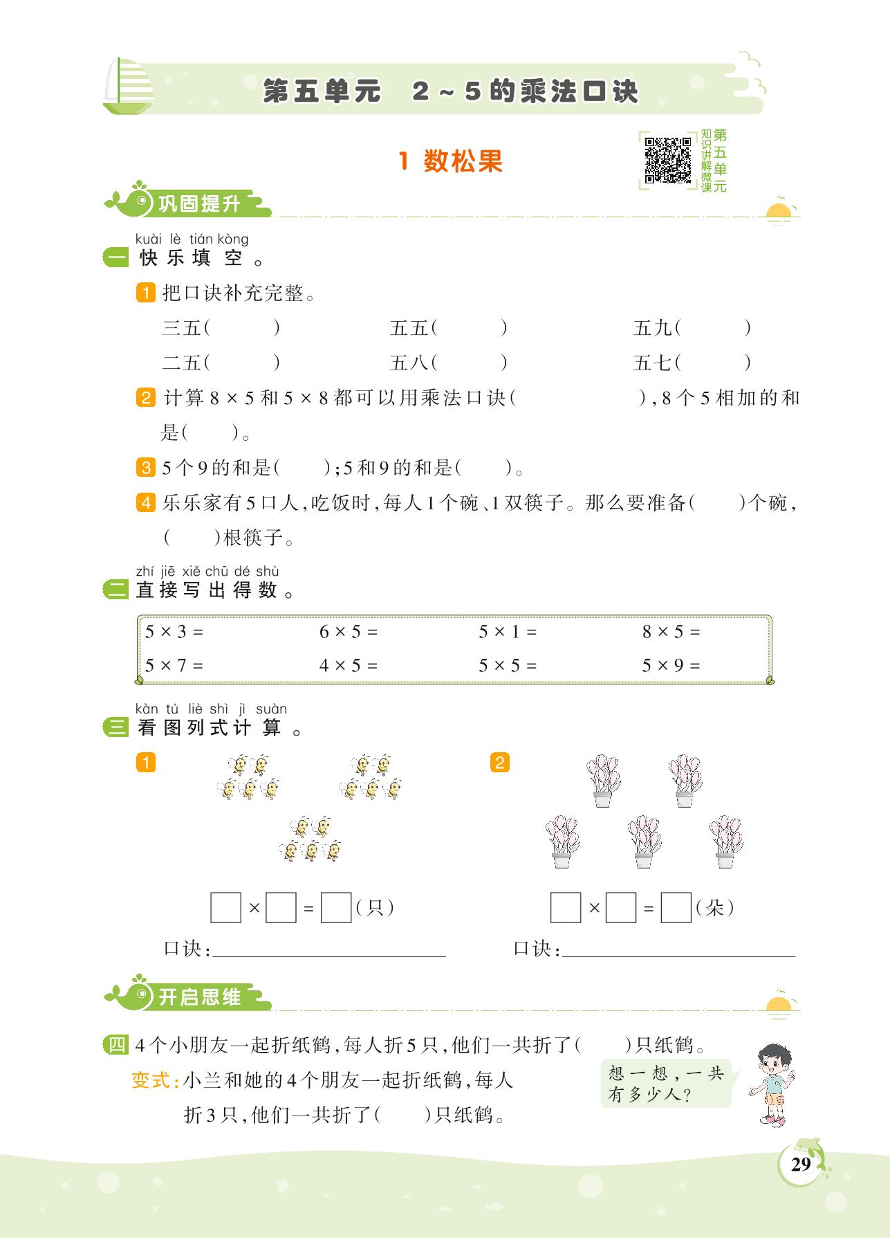 2021上册二年级数学北师版 第五单元 2~5的乘法口诀——1 数松果