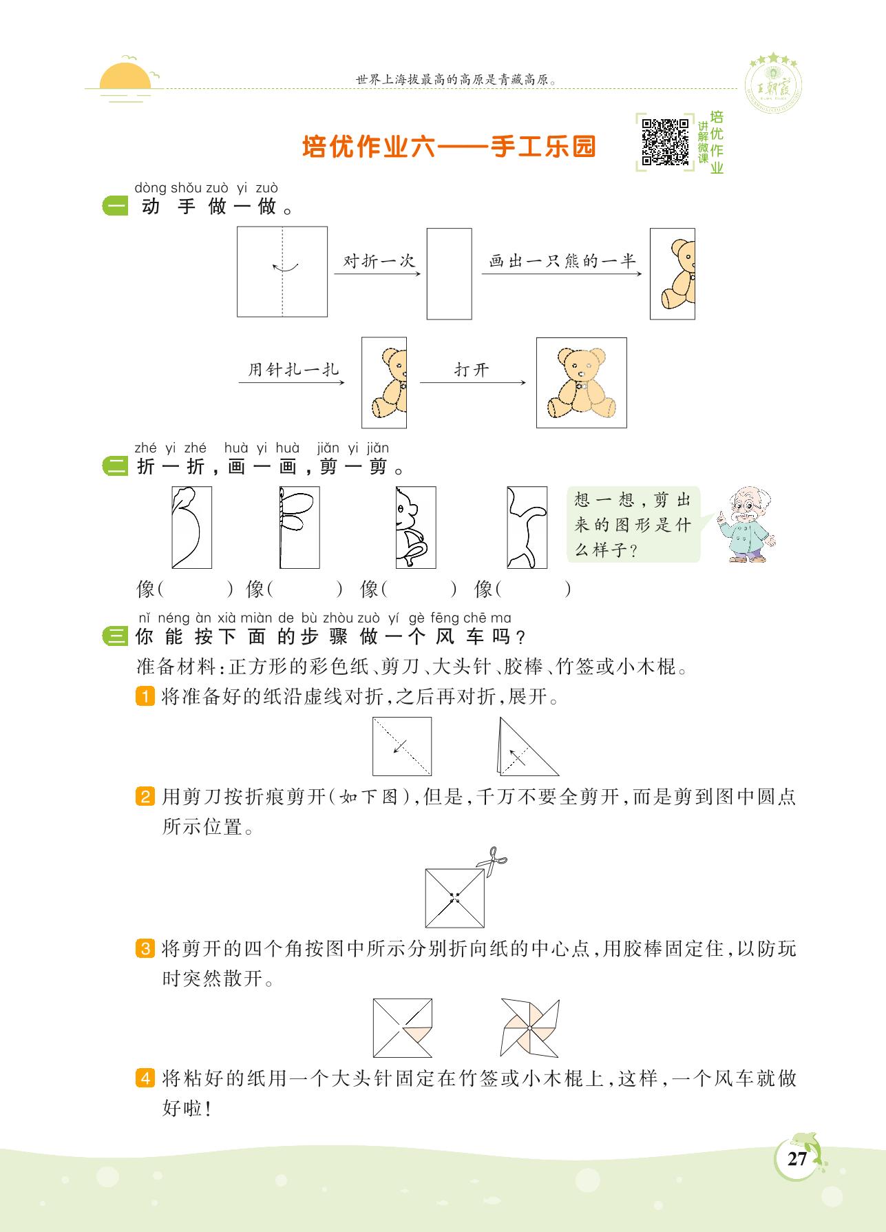 2021上册二年级数学北师版 第四单元 图形的变化——培优作业六 手工乐园