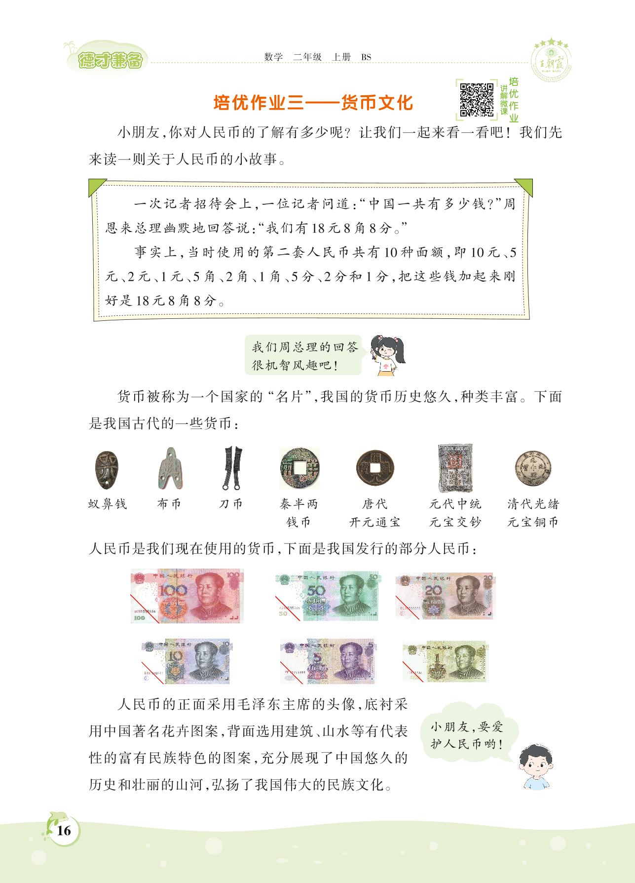 2021上册二年级数学北师版 第二单元 购物——培优作业三 货币文化