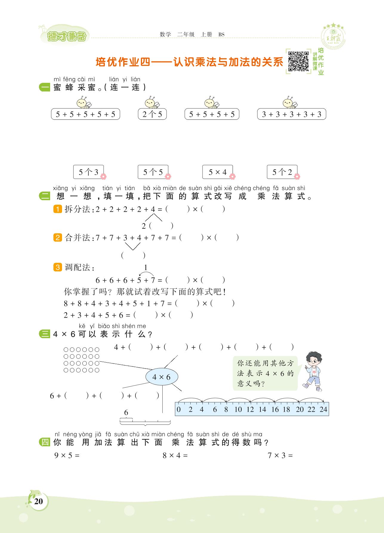 2021上册二年级数学北师版 第三单元 数一数与乘法——培优作业四 认识乘法与加法的关系