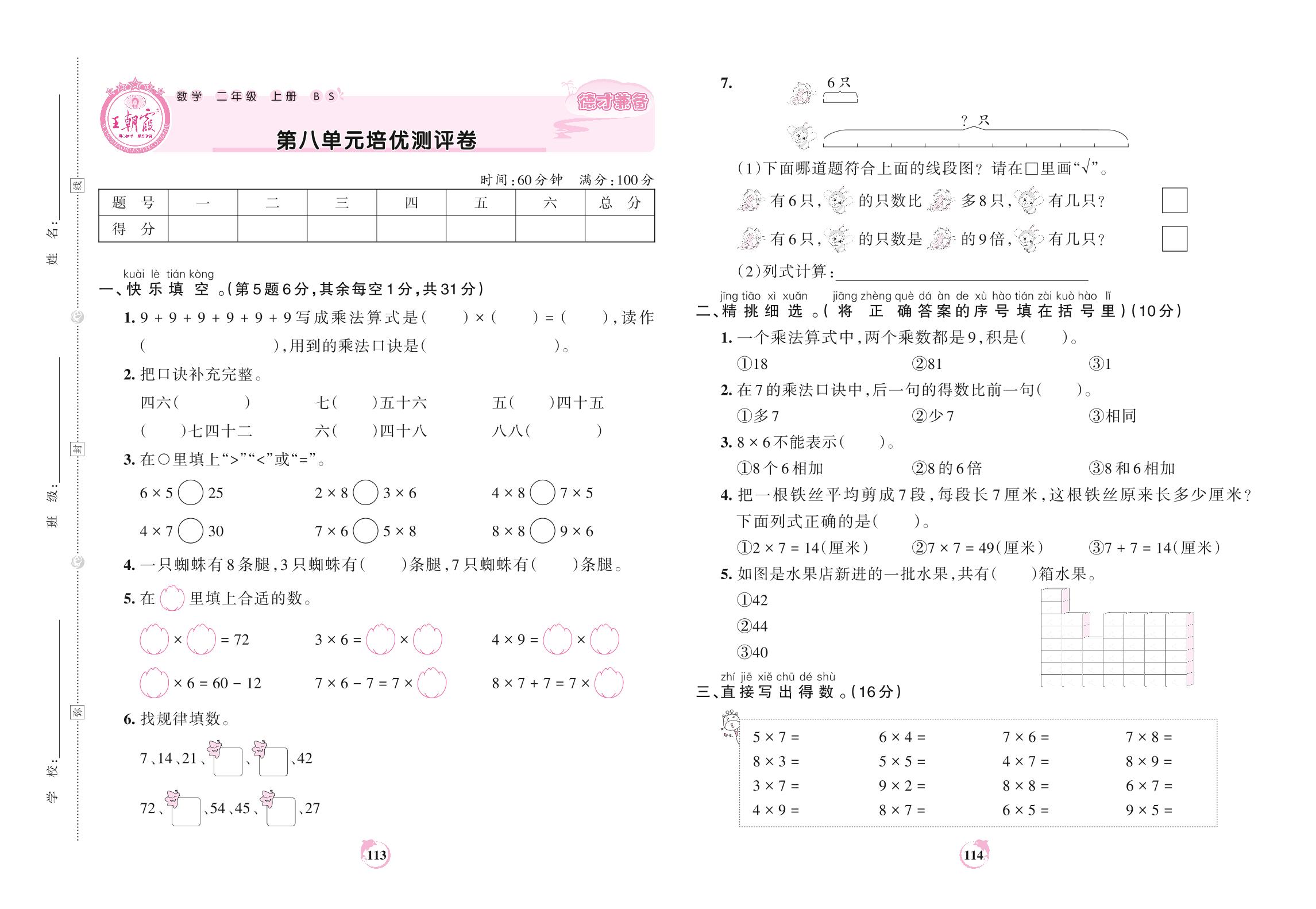 二年级数学北师版上册单元卷