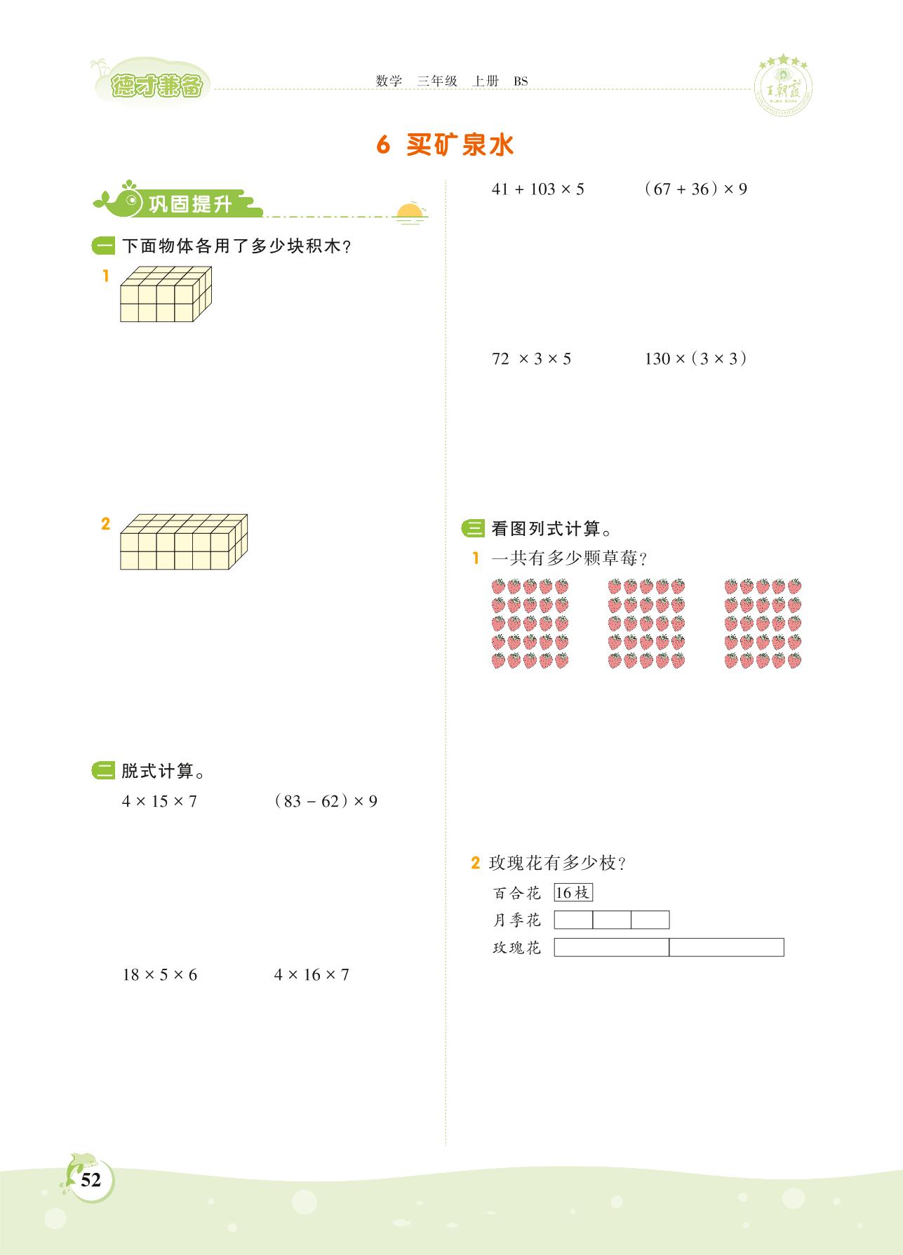 2021上册三年级数学北师版 第六单元 乘法——6 买矿泉水