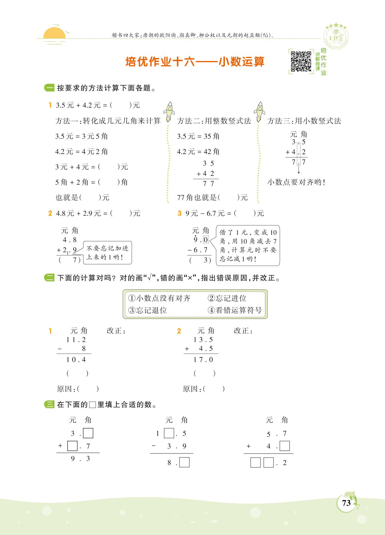 2021上册三年级数学北师版 第八单元 认识小数——培优作业十六 小数运算