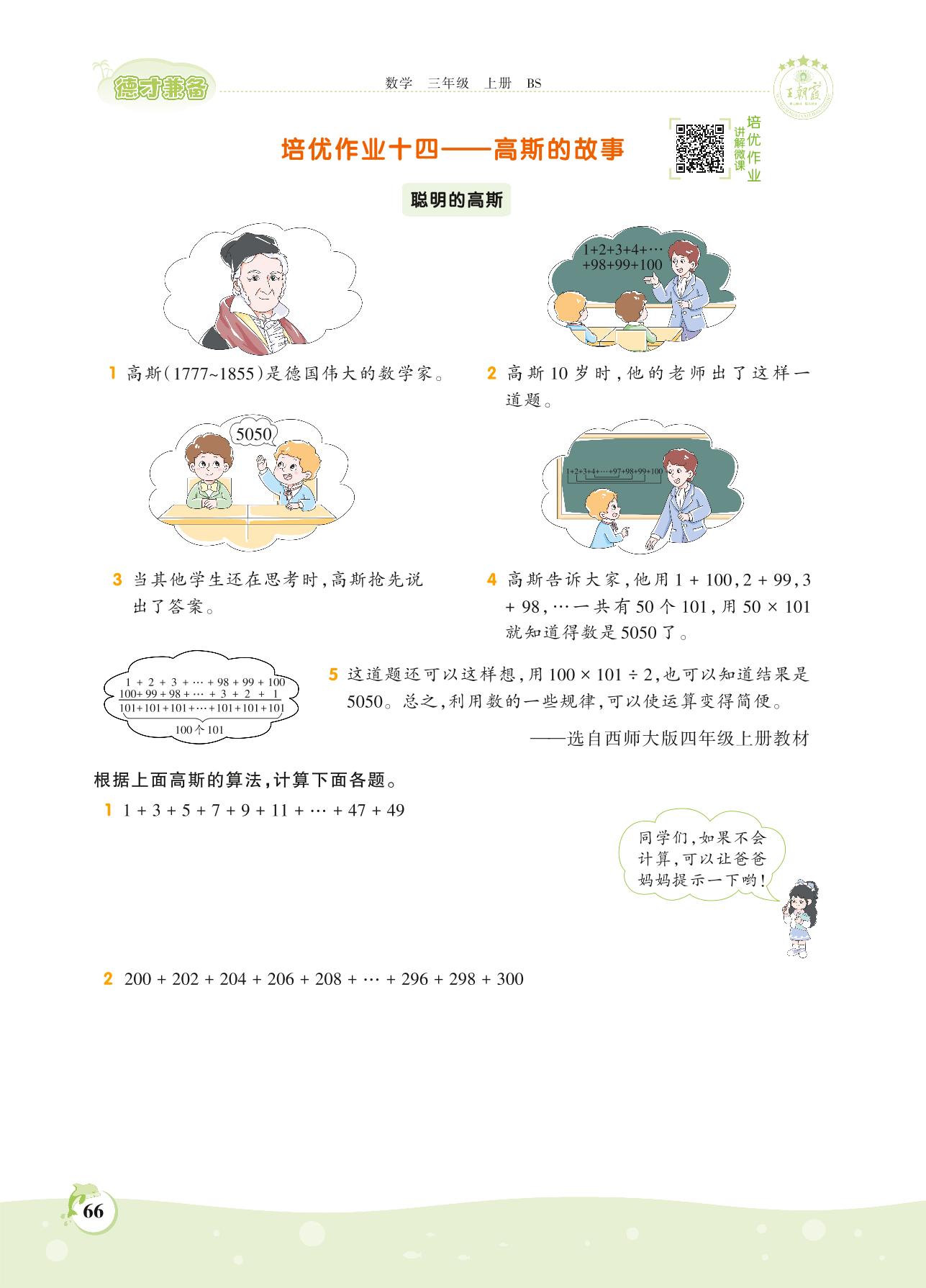 2021上册三年级数学北师版 第七单元 数学好玩——培优作业十四 高斯的故事