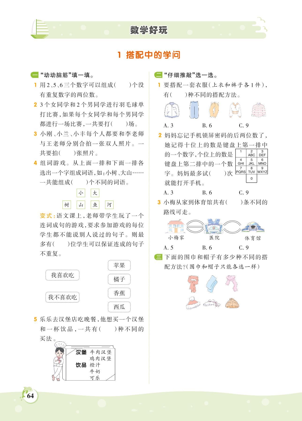 2021上册三年级数学北师版 第七单元 数学好玩——1 搭配中的学问